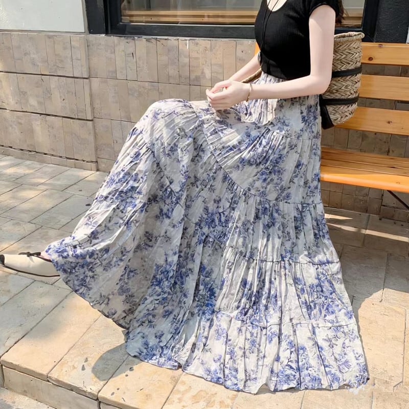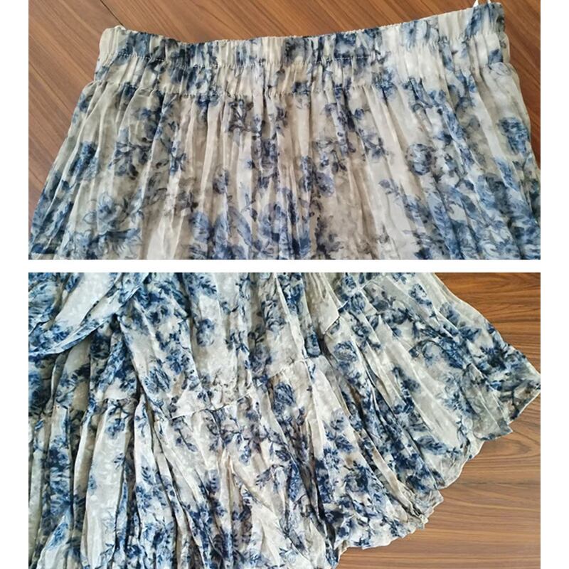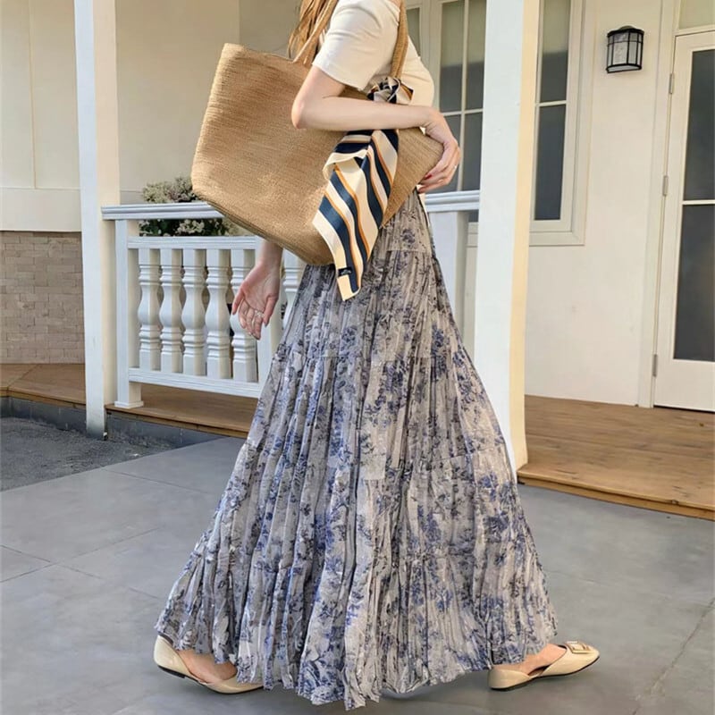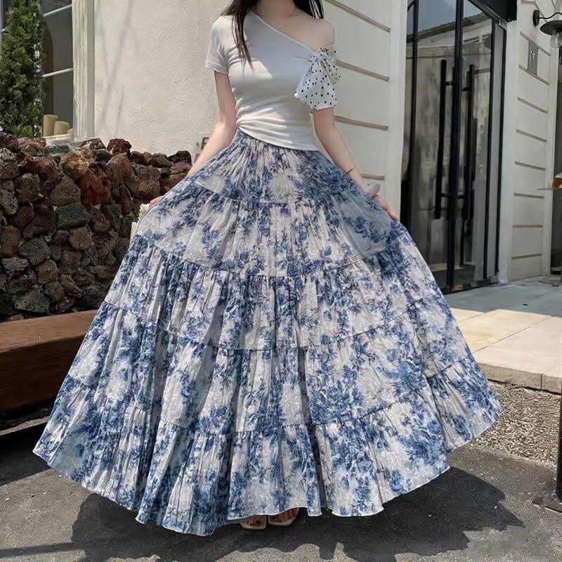 ボトムス スカート アシンメトリー プリーツ 花柄 オイルペインティング風