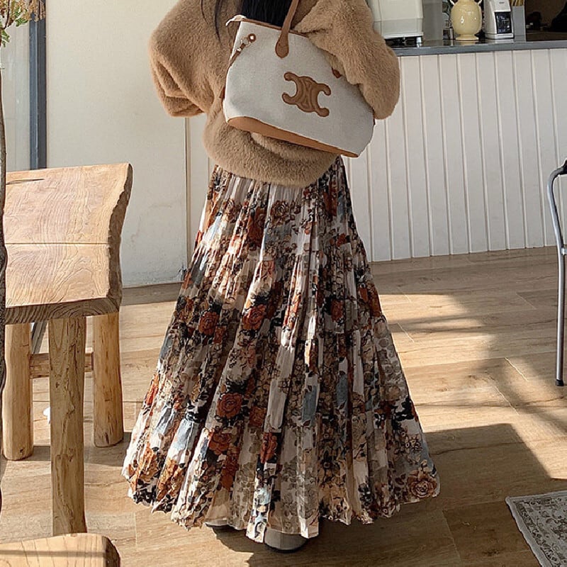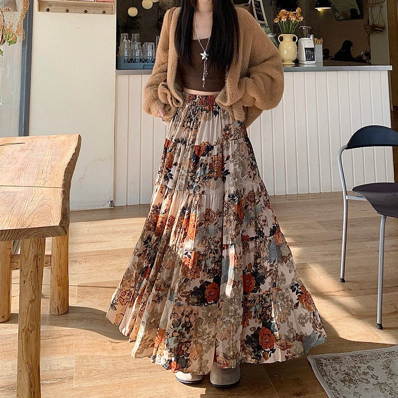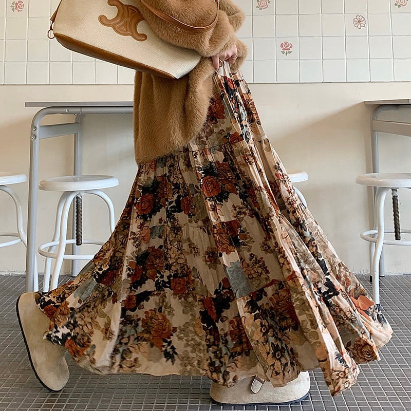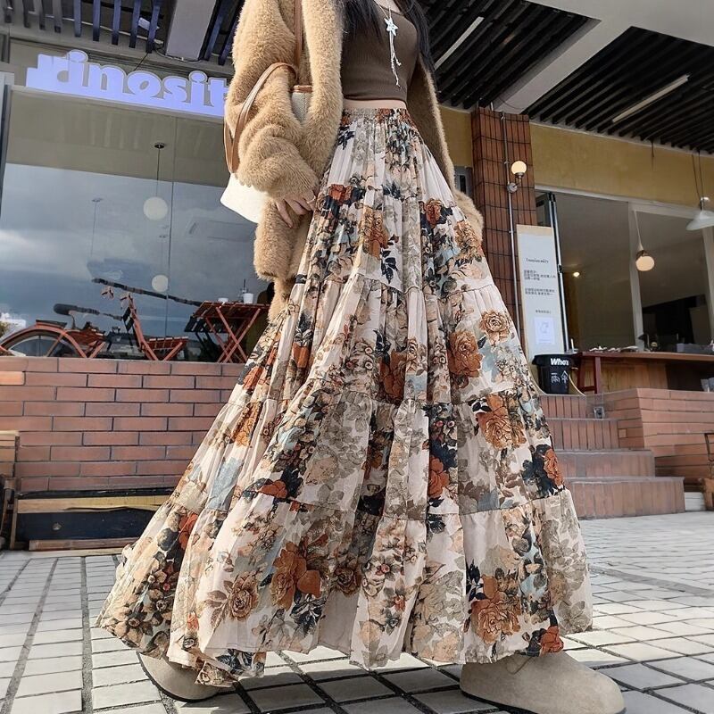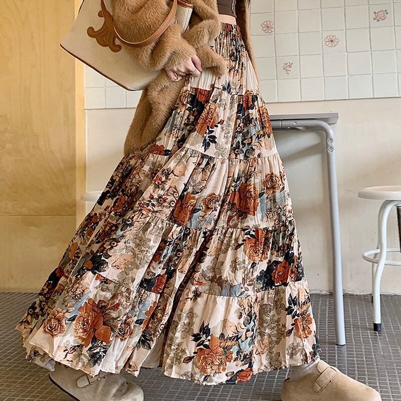 ボトムス スカート 強い印象 カラフル 花柄 ロングスカート ボヘミアン