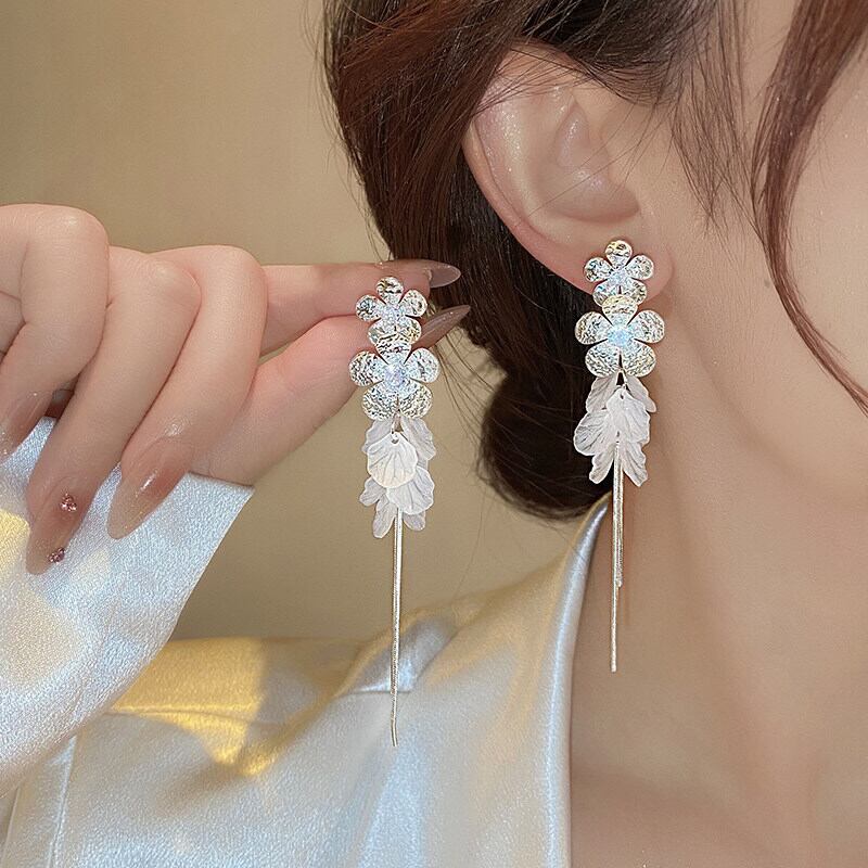 アクセサリー ピアス シルバーフラワー×貝殻フリンジ 海辺 高級感