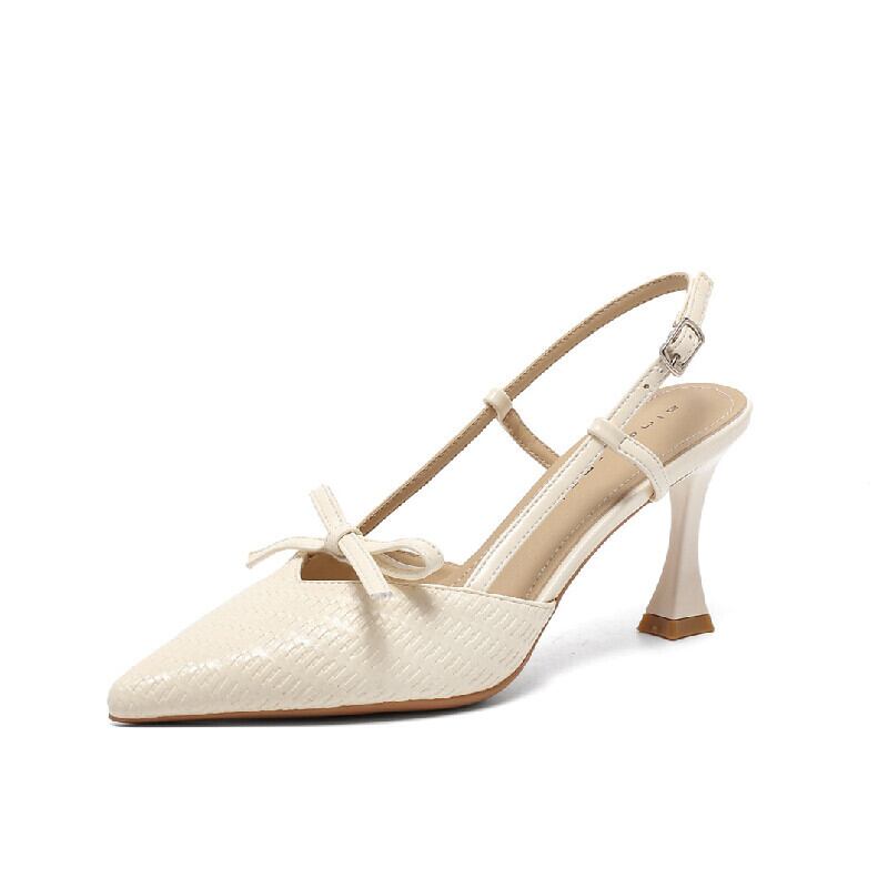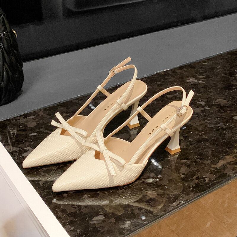 2colors シューズ パンプス かかとオープン 蝶結び エレガント ベージュ ピンク 7CM