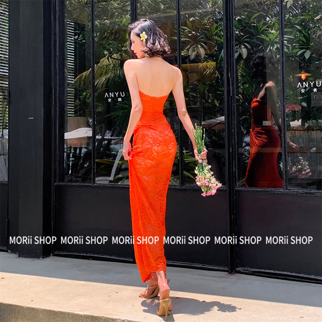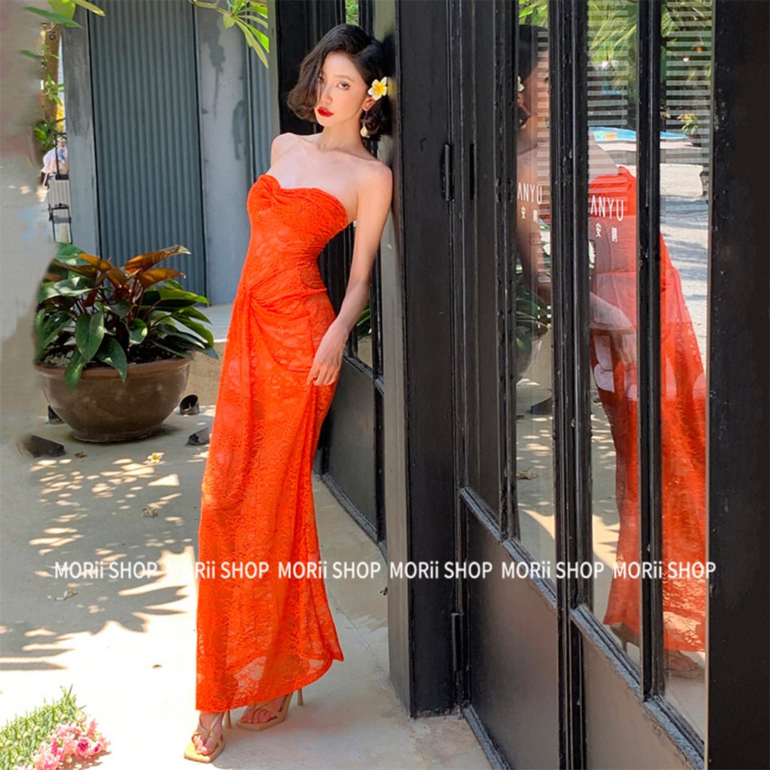 【SummerVacationシリーズ】ワンピース レース 透け感 大人かわいい ビーチリゾート オレンジS M L
