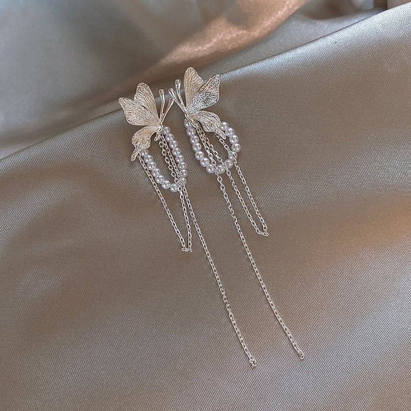 アクセサリー ピアス 蝶 タッセル レディース おしゃれ シルバー色