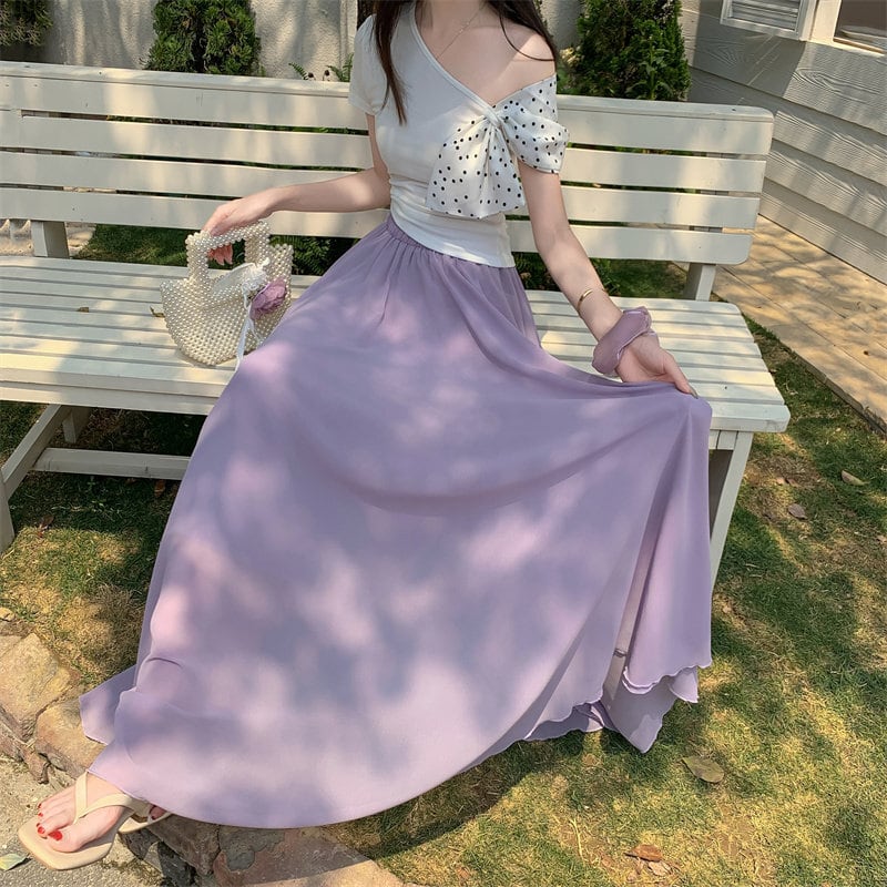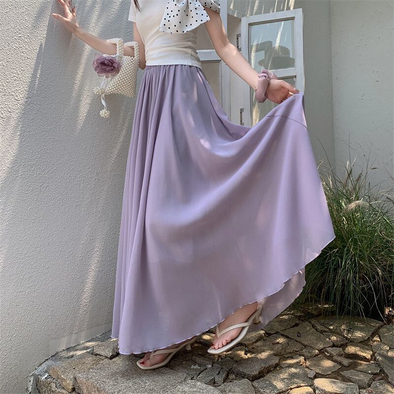 2colors ボトムス スカート カジュアル ロングスカート 無地 パープル イエロー