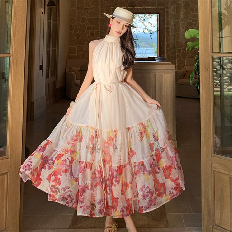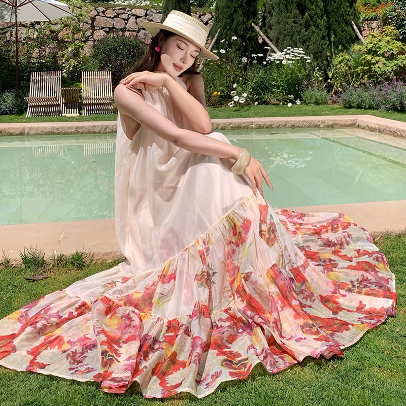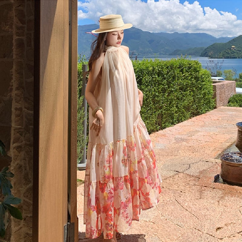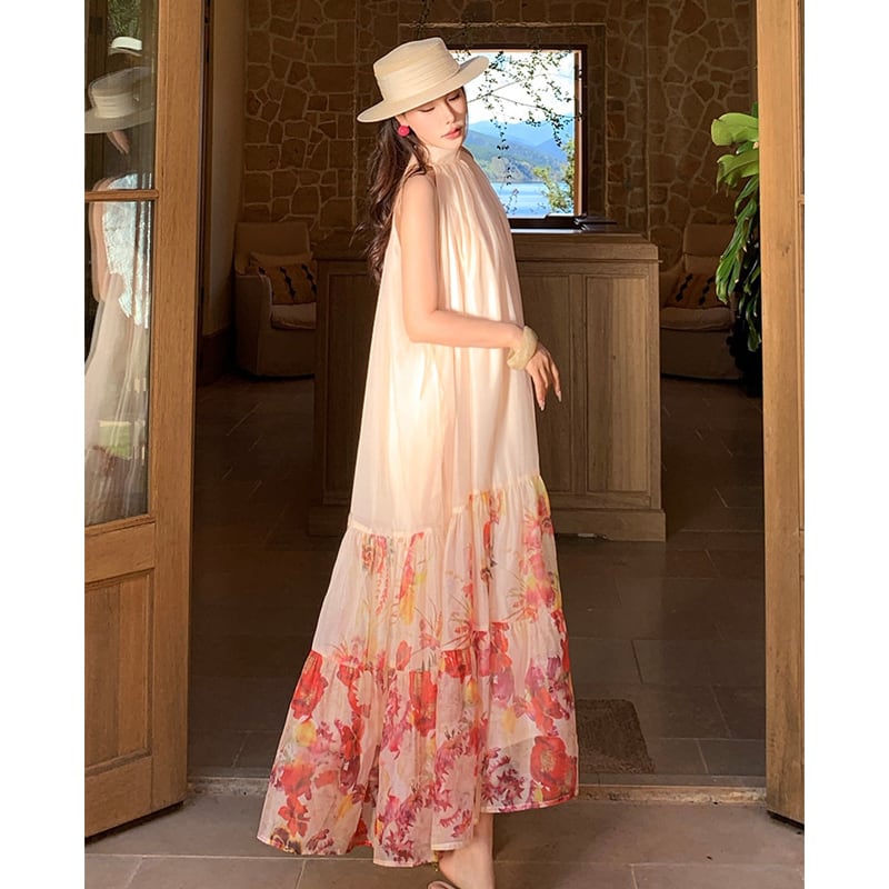 【SummerVacationシリーズ】ワンピース 花柄 ノースリーブ 旅行 綺麗め S M L XL
