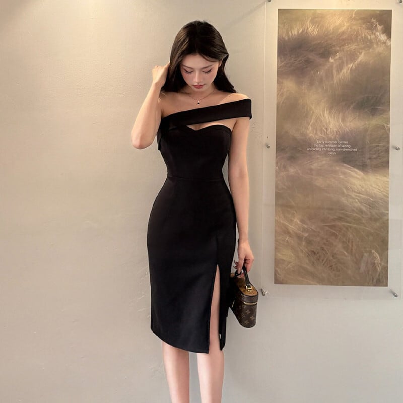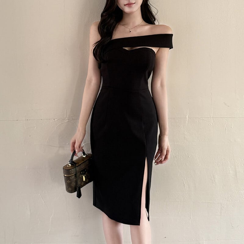 ワンピース セクシー オフショルダー スリット ブラック S M L