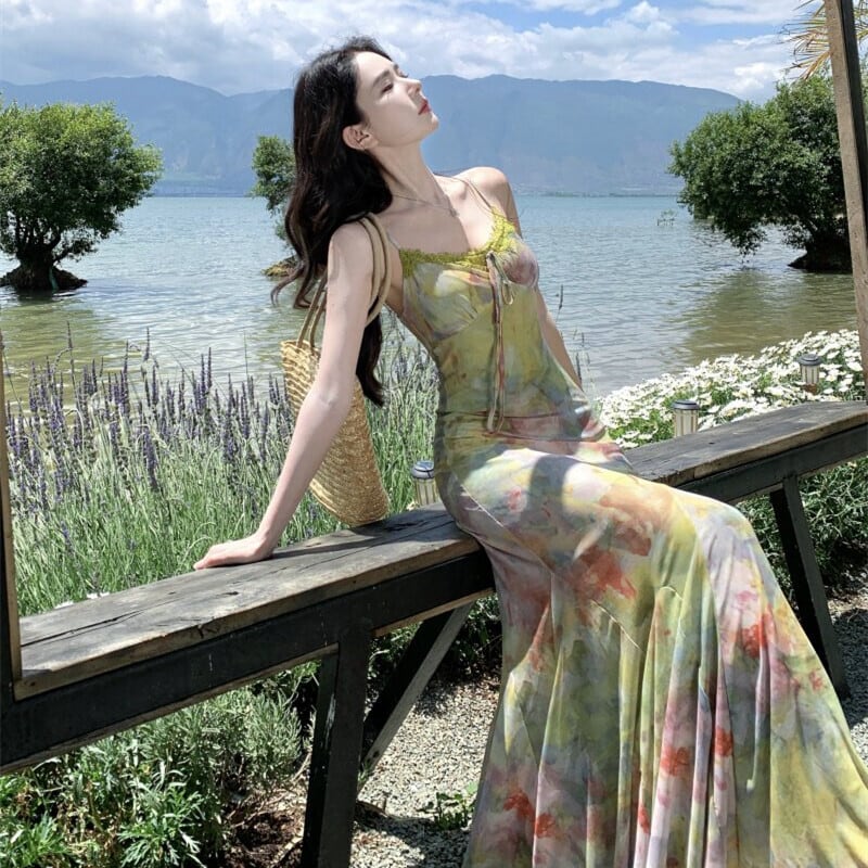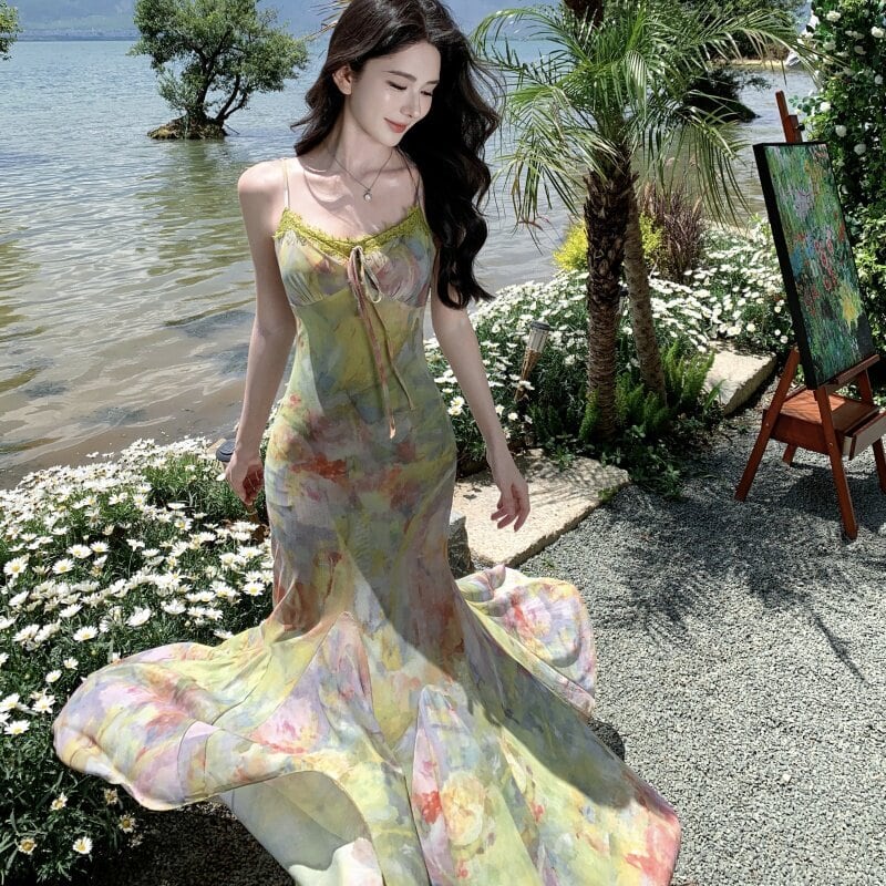 【SummerVacationシリーズ】ワンピース カラフル 視線集中 フィッシュテール S M L