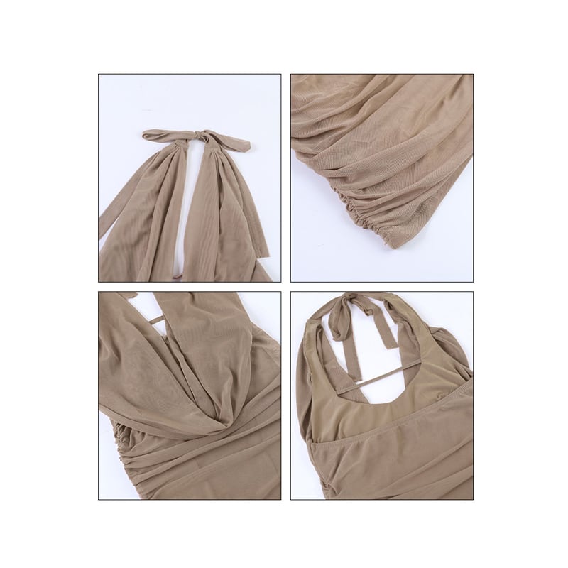 ワンピース バックレス ドレープネック タイト メッシュ S M L