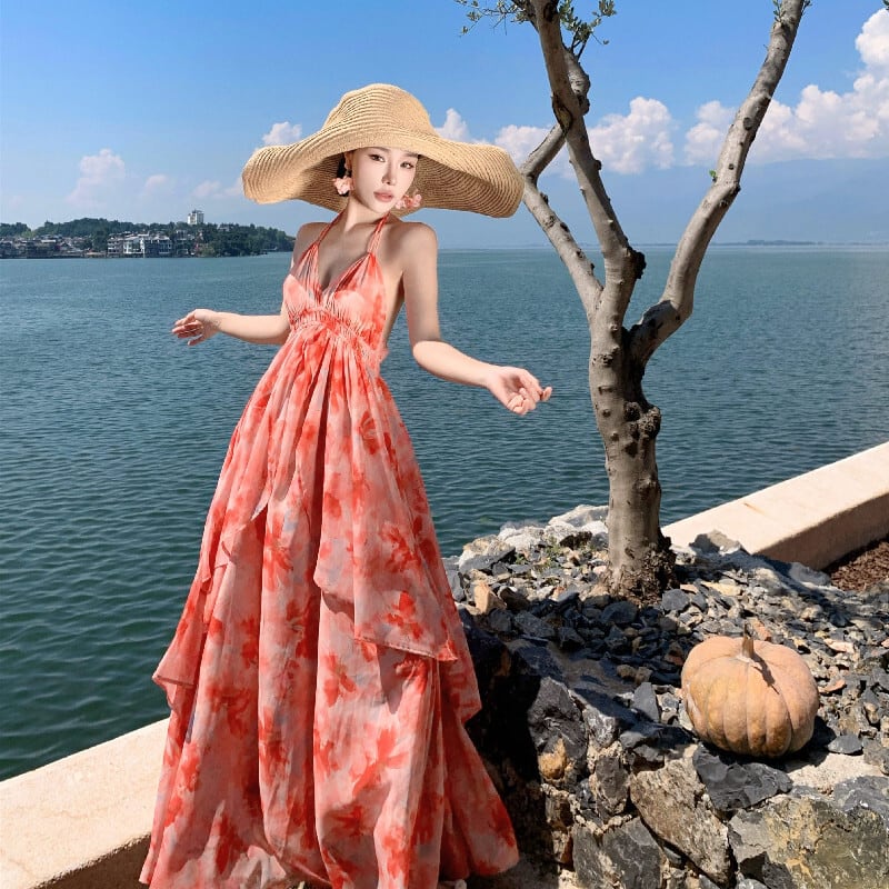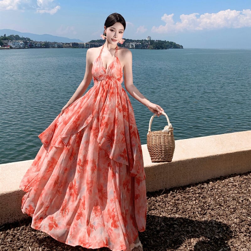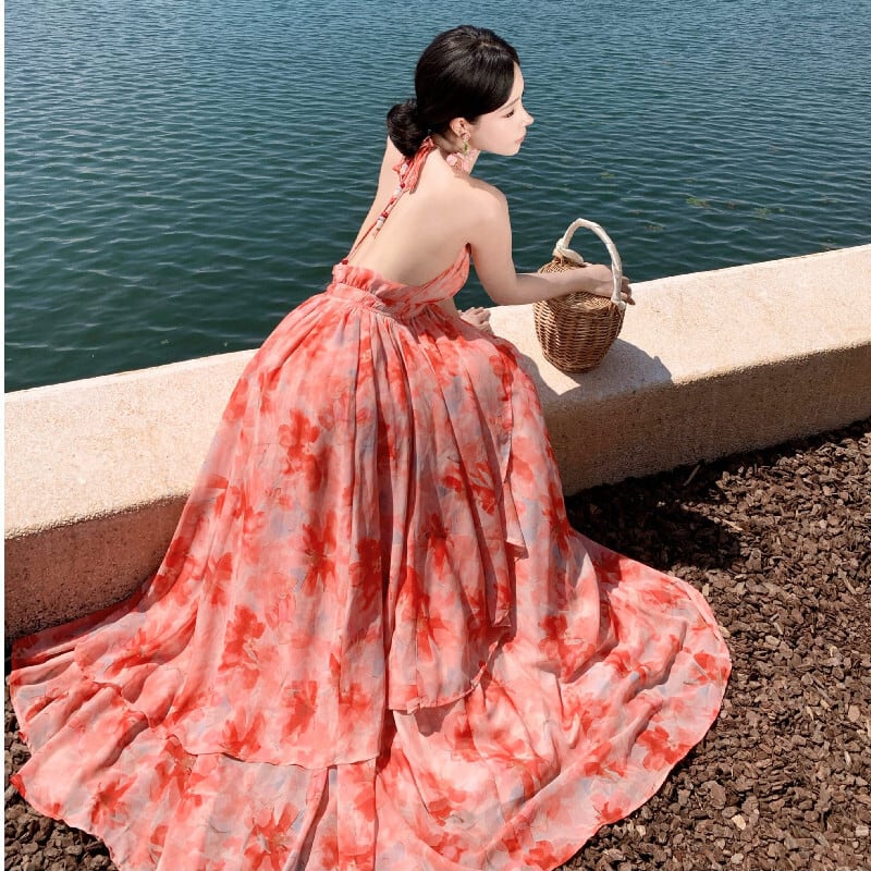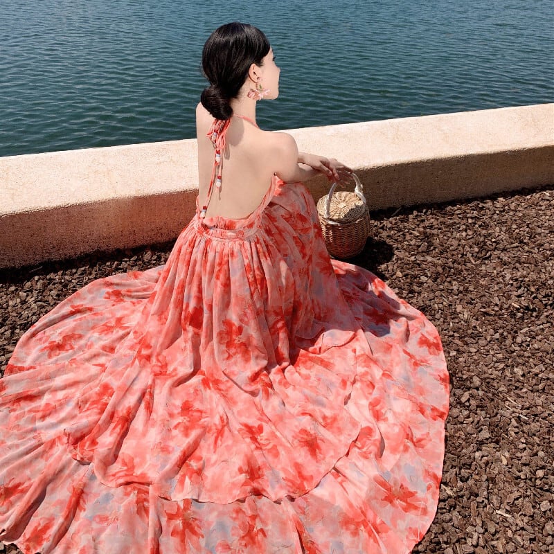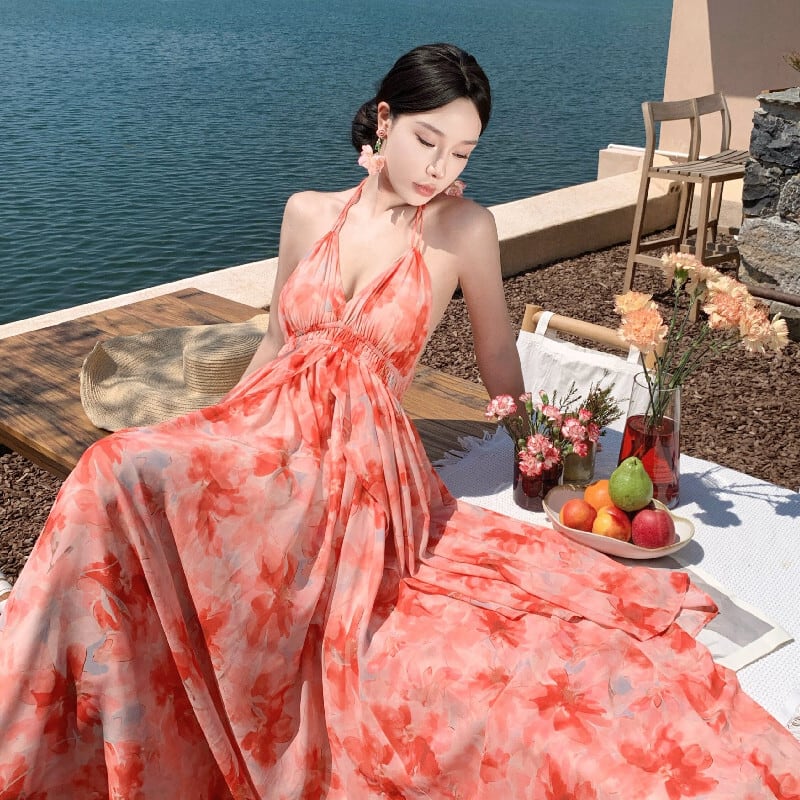【SummerVacationシリーズ】ワンピース バックレス 鮮やか 着まわし抜群 S M L