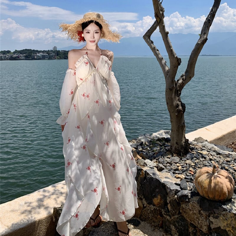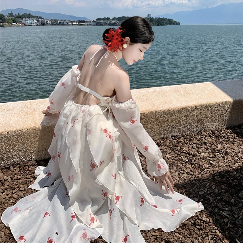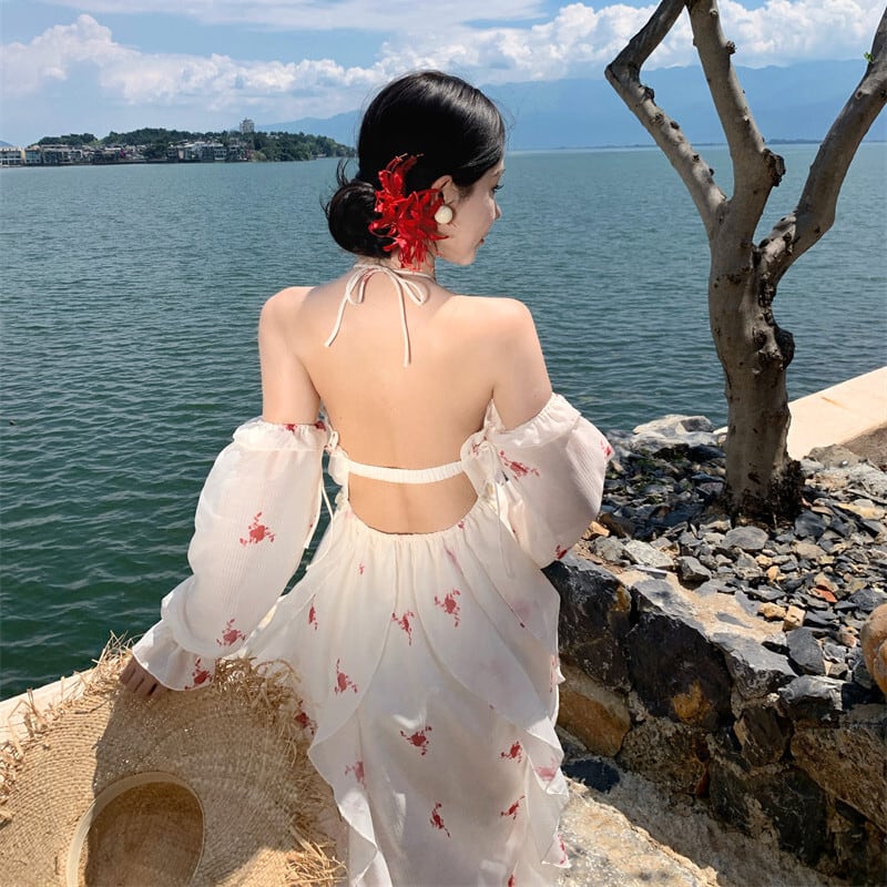【SummerVacationシリーズ】ワンピース 花柄 バックレス 休暇 おしゃれ S M L