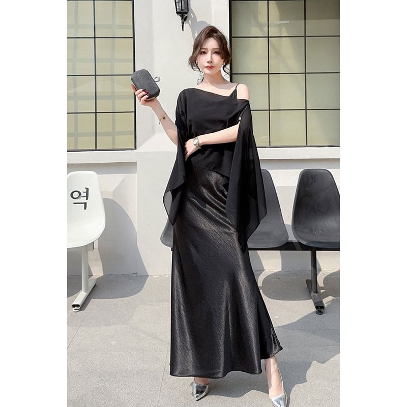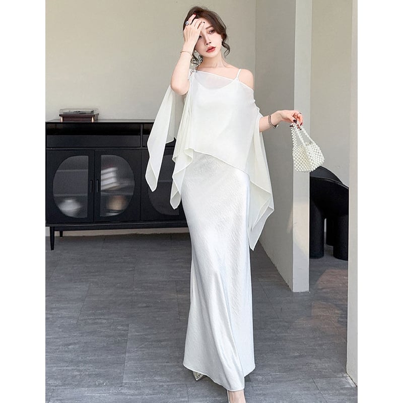 パーティードレス フェミニン シフォン 落ち感 気質溢れる ホワイト ブラック