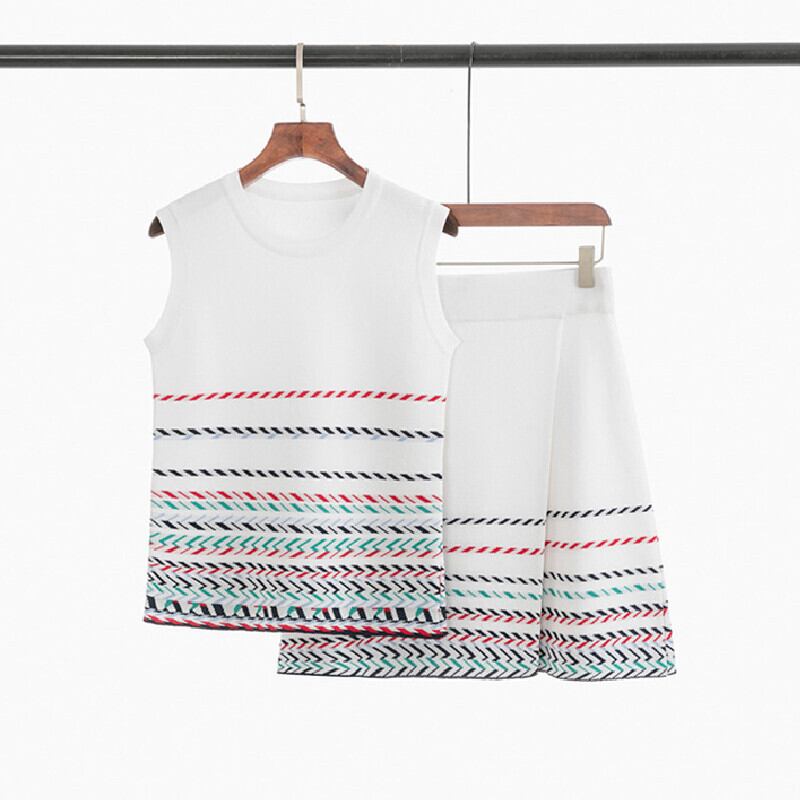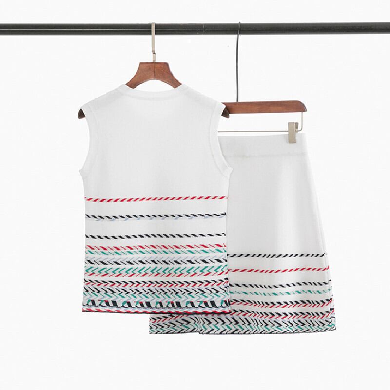 セットアップ トップス+スカート ノースリーブ レーヨンニット 配色 ホワイト S M L XL