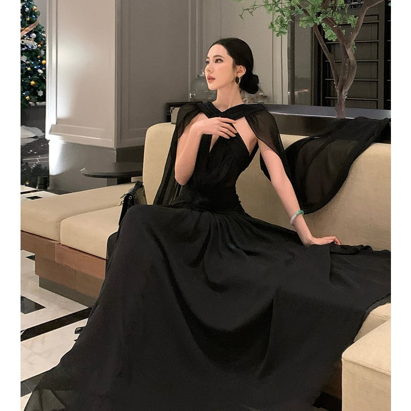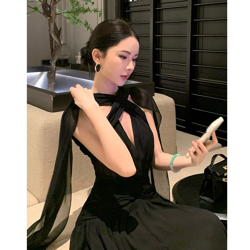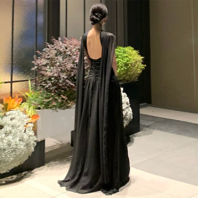 ロングドレス バックレス セクシー 視線集中 無地 ブラック S M L