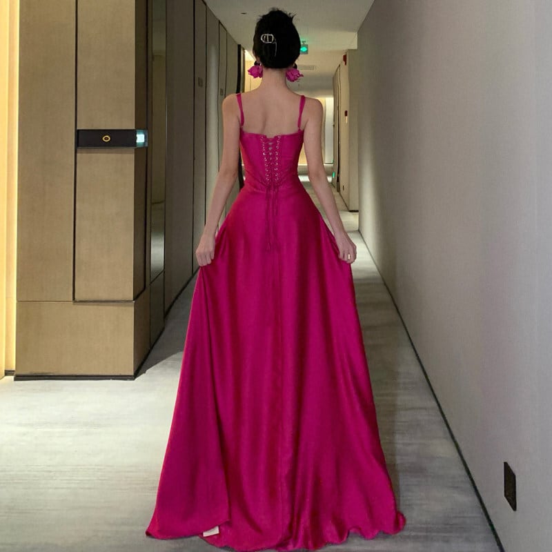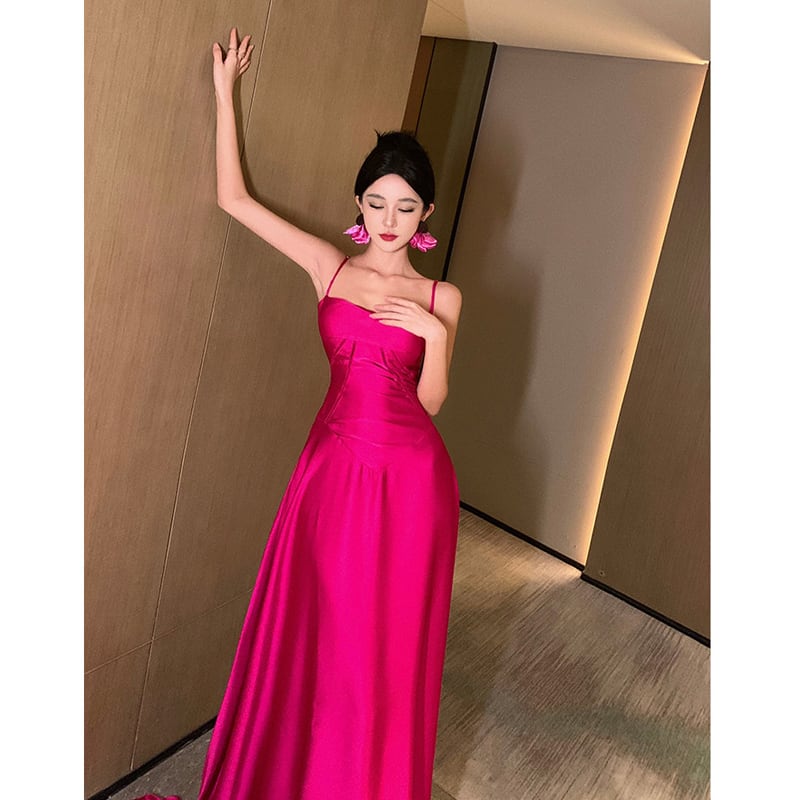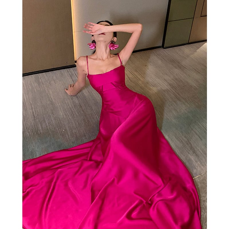 ロングドレス 宴会 バックリボン 女っぽさが漂う ローズ色 S M L