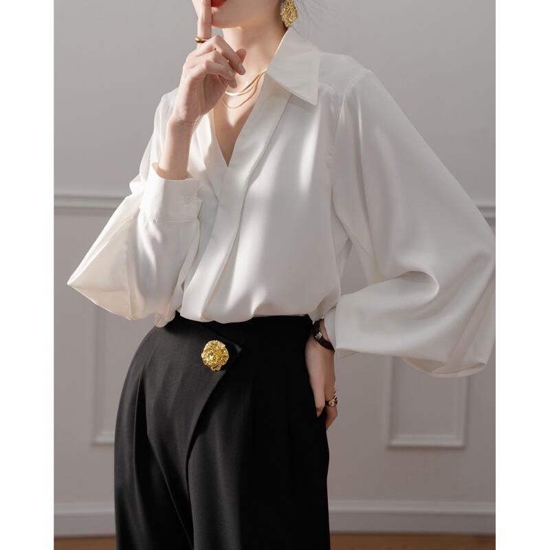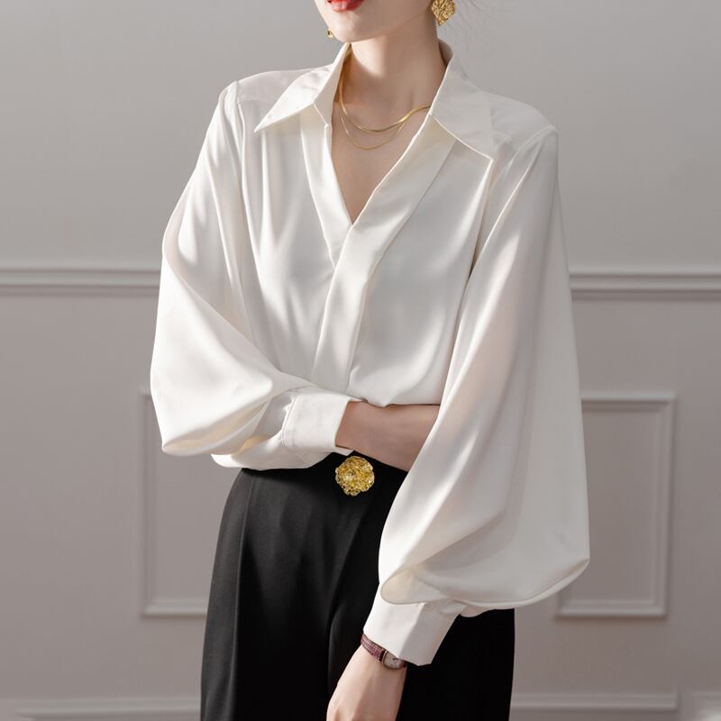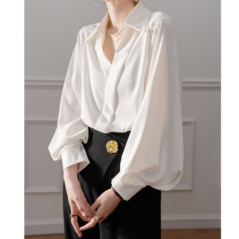 トップス シャツ ランタンスリーブ 無地 オフィスカジュアル ホワイト S M L XL