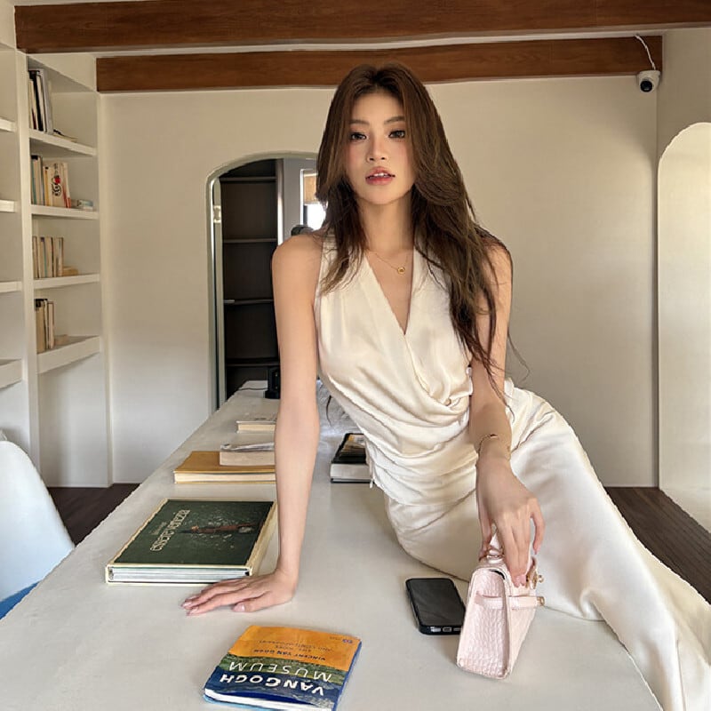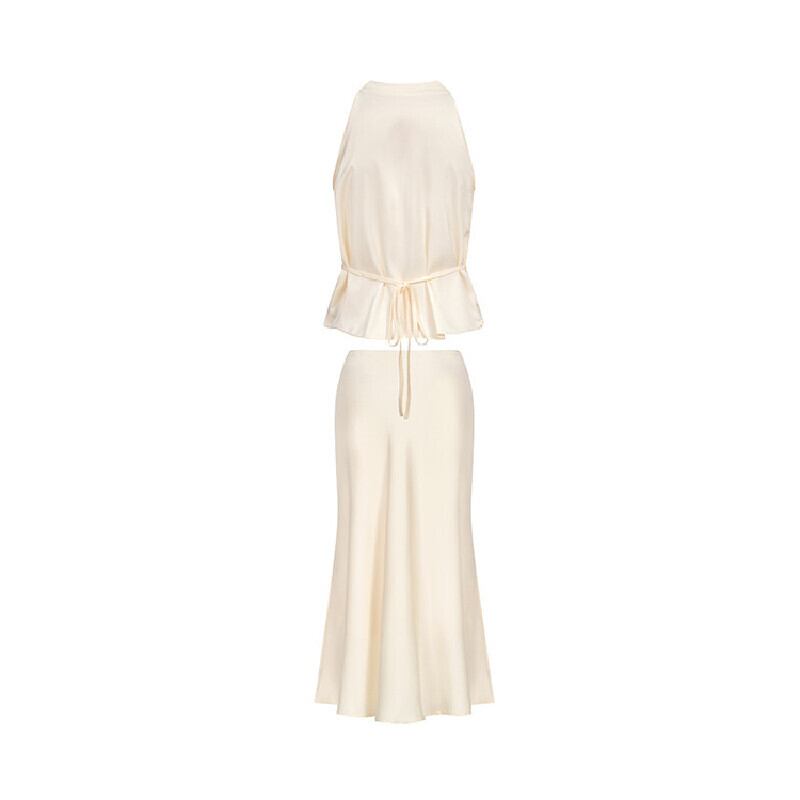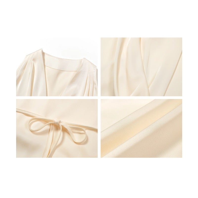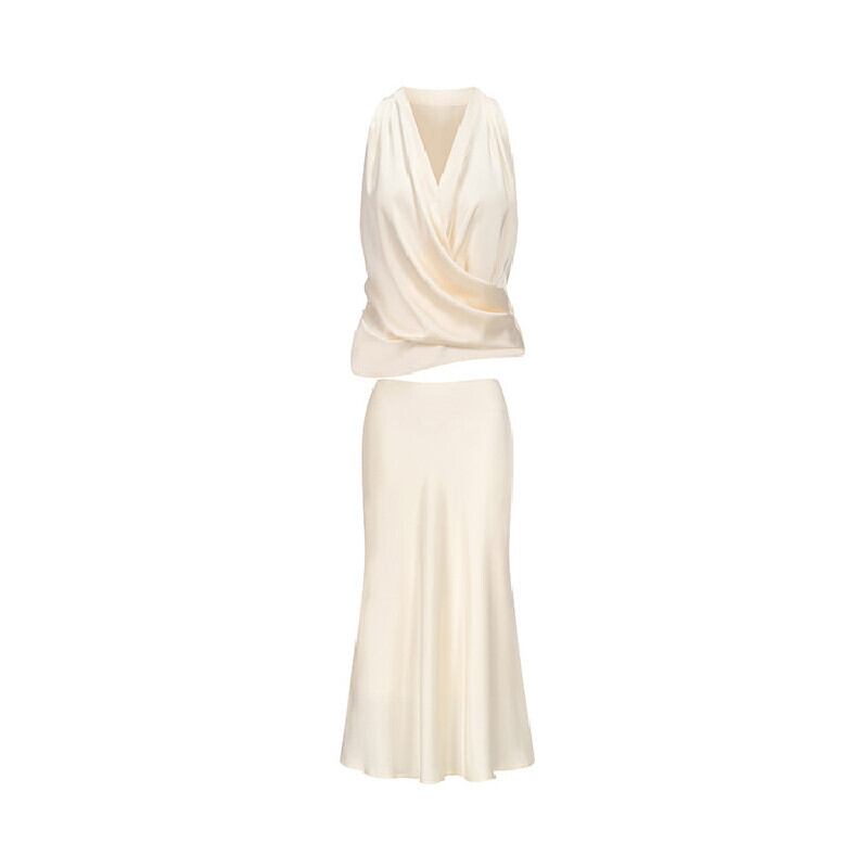 セットアップ Vネック トップス+ロングスカート サテン エレガント ベージュ S M L