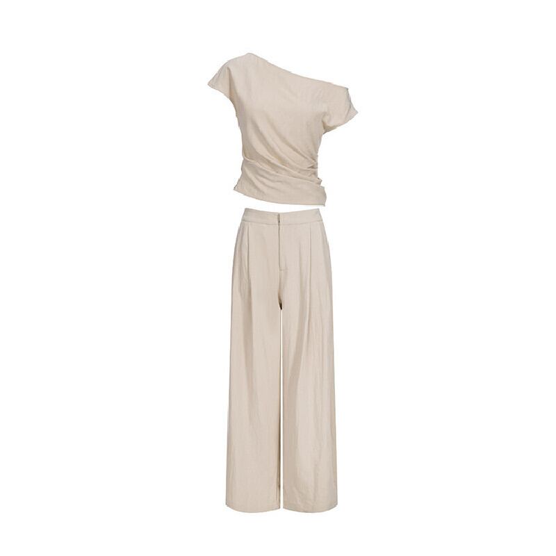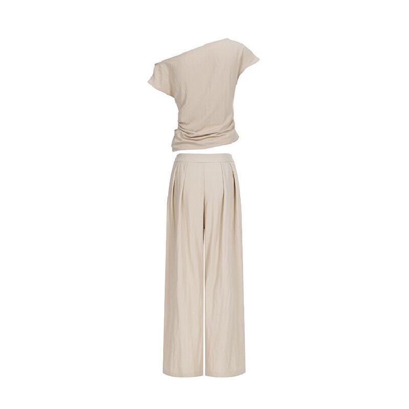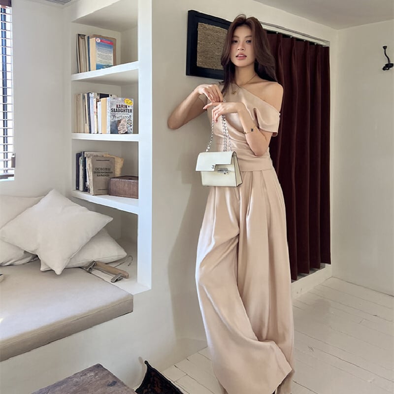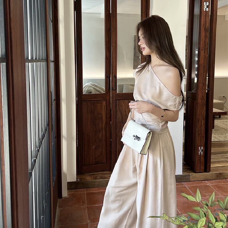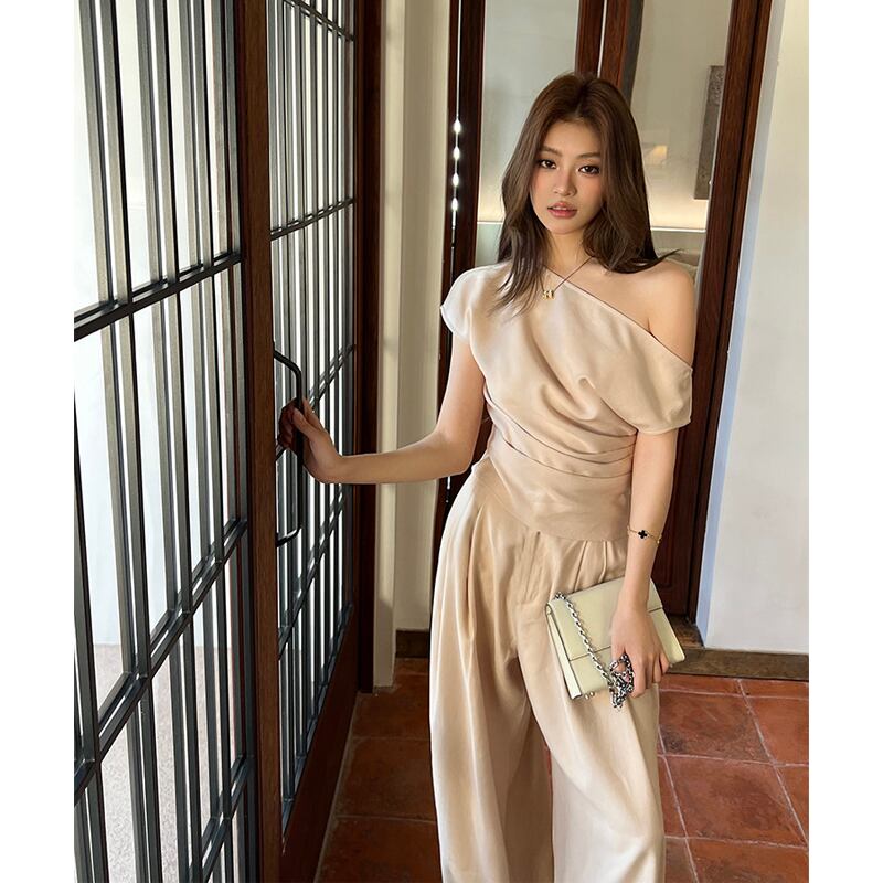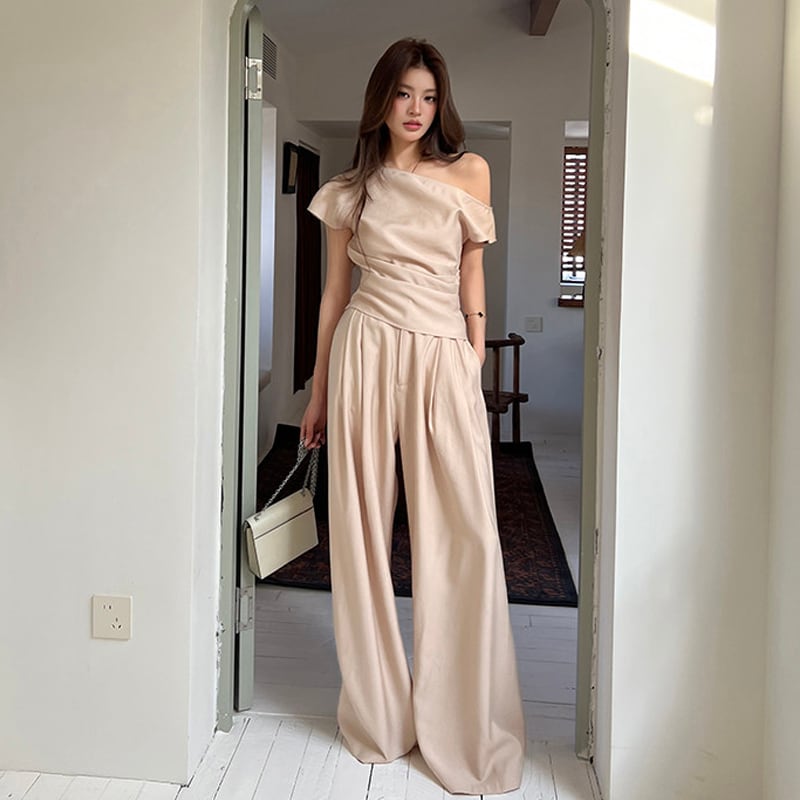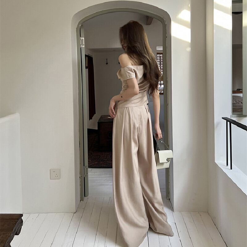 セットアップ オフショルダー トップス+ロングワイドパンツ オフィスカジュアル S M L