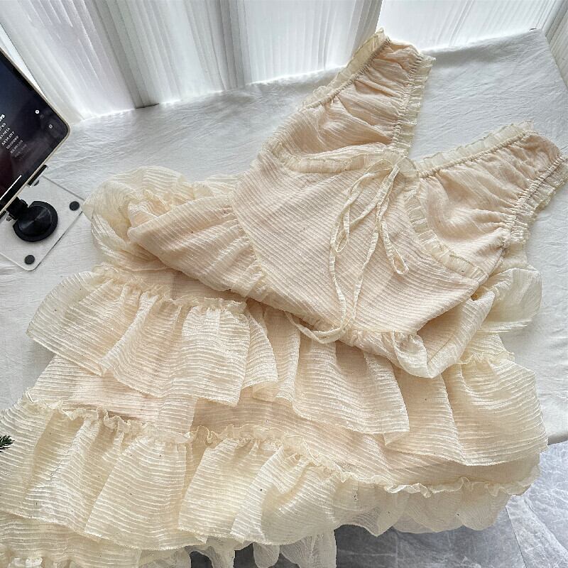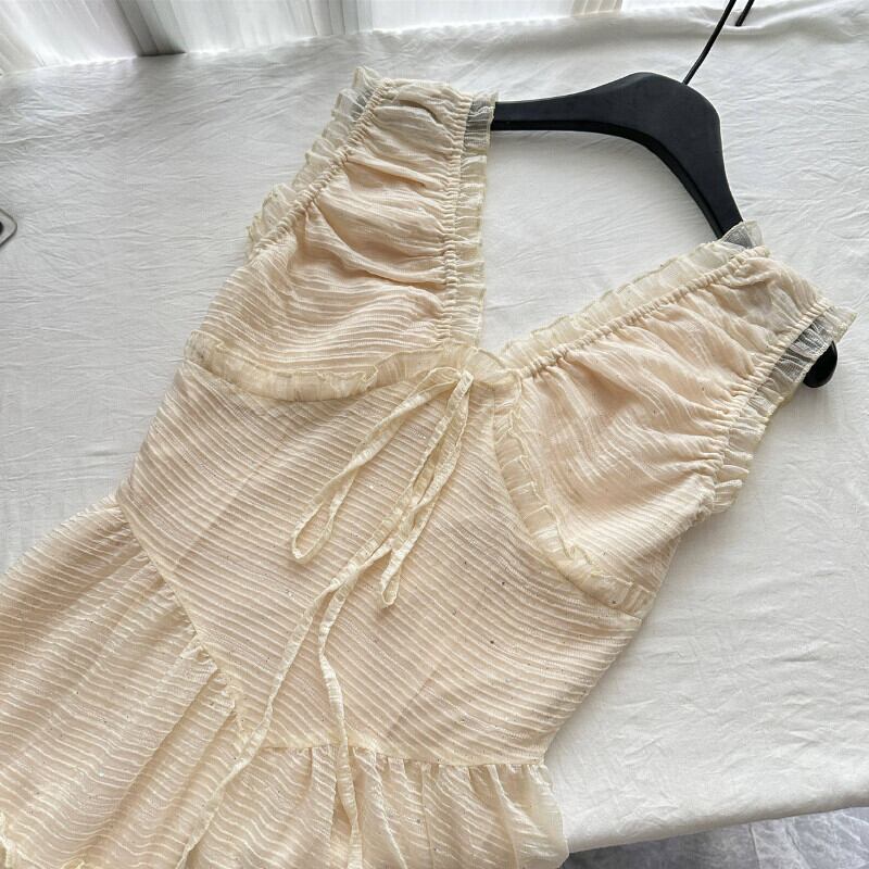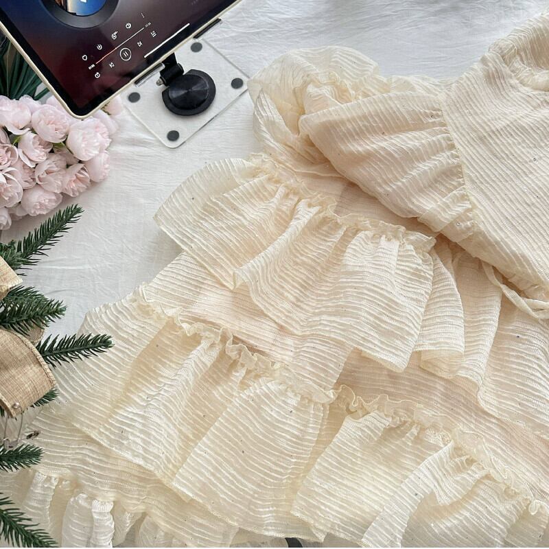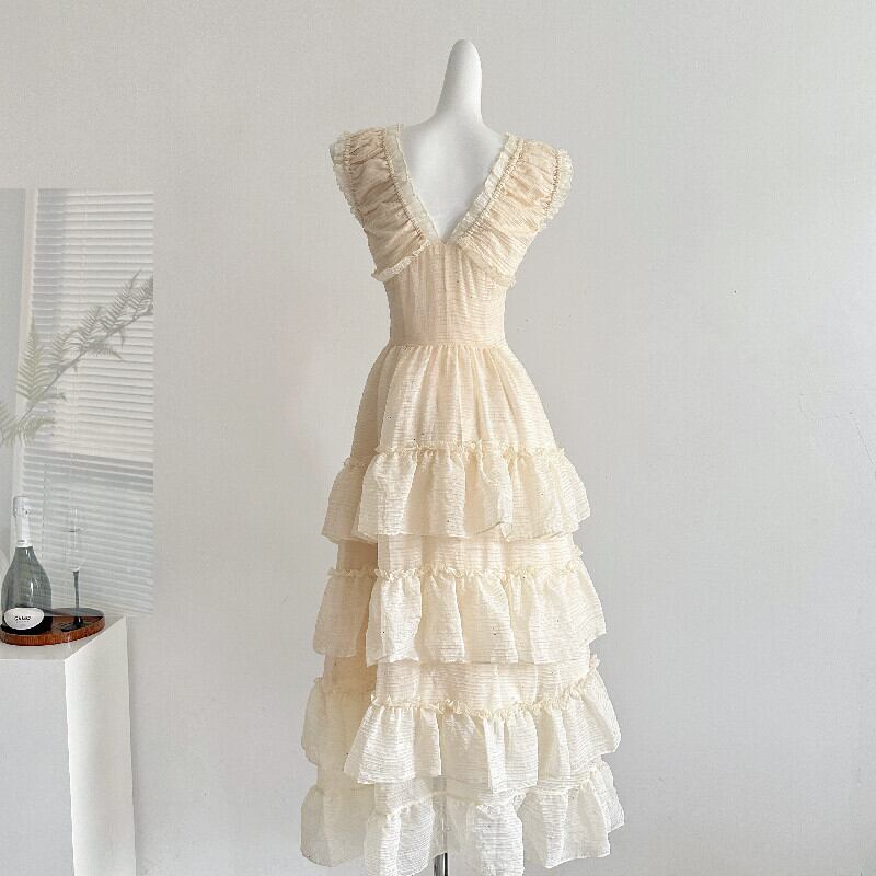 ワンピース Vネック スウィート ティアードワンピース フレア ベージュ S M L