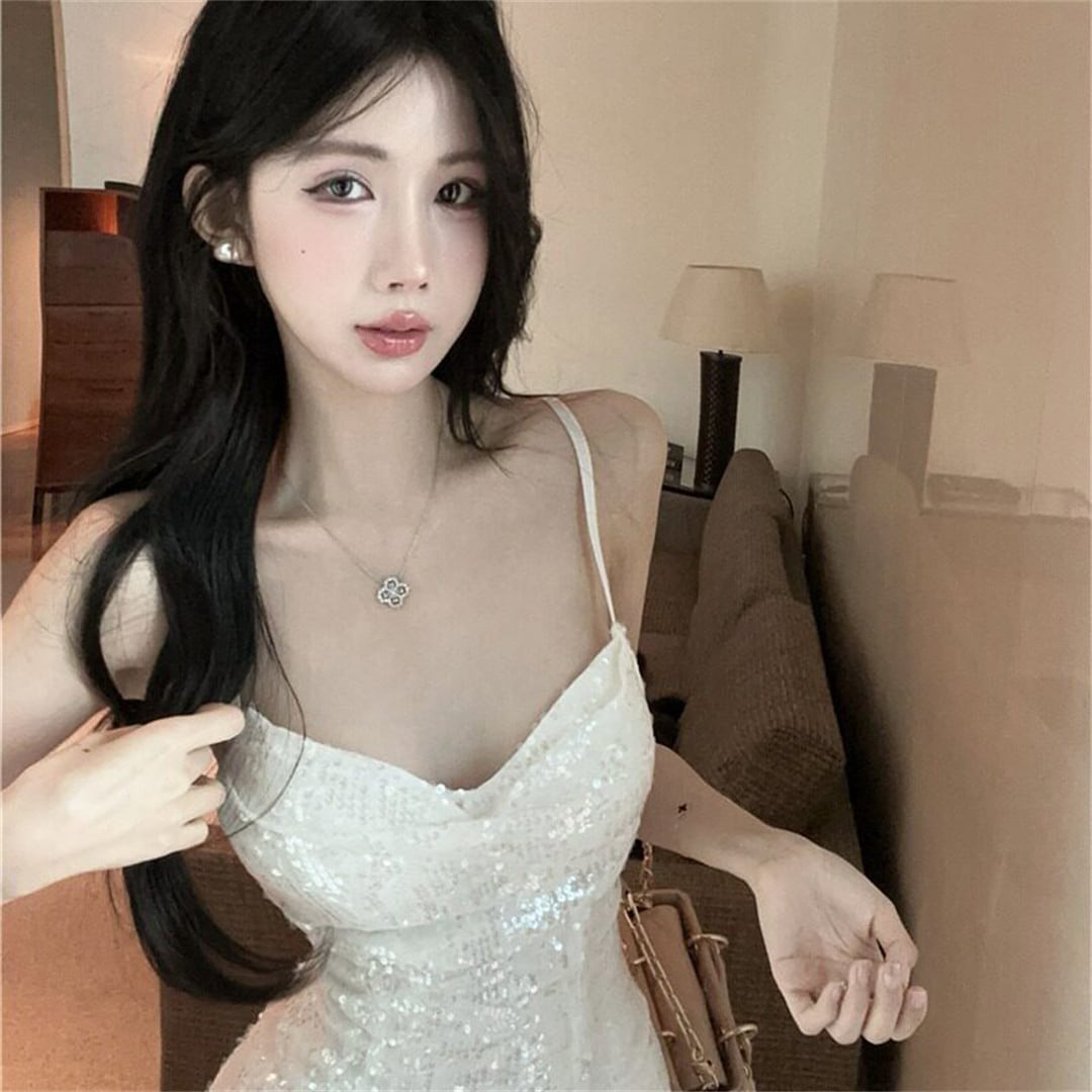 ワンピース 切り替え デザイン性 スパンコール キャミソール ホワイト S M L