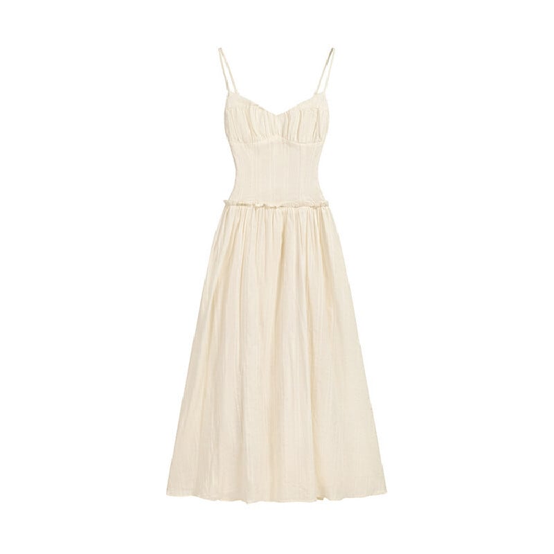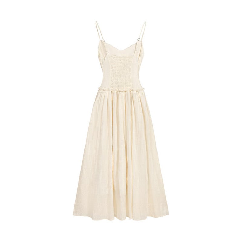 キャミソールワンピース フィットウエスト おしゃれ カジュアル ベージュ S M L