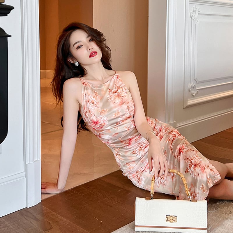 【夕暮薔薇シリーズ】ワンピース ノースリーブ フェミニン 花柄 おしゃれ S M L XL