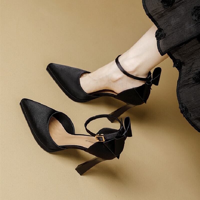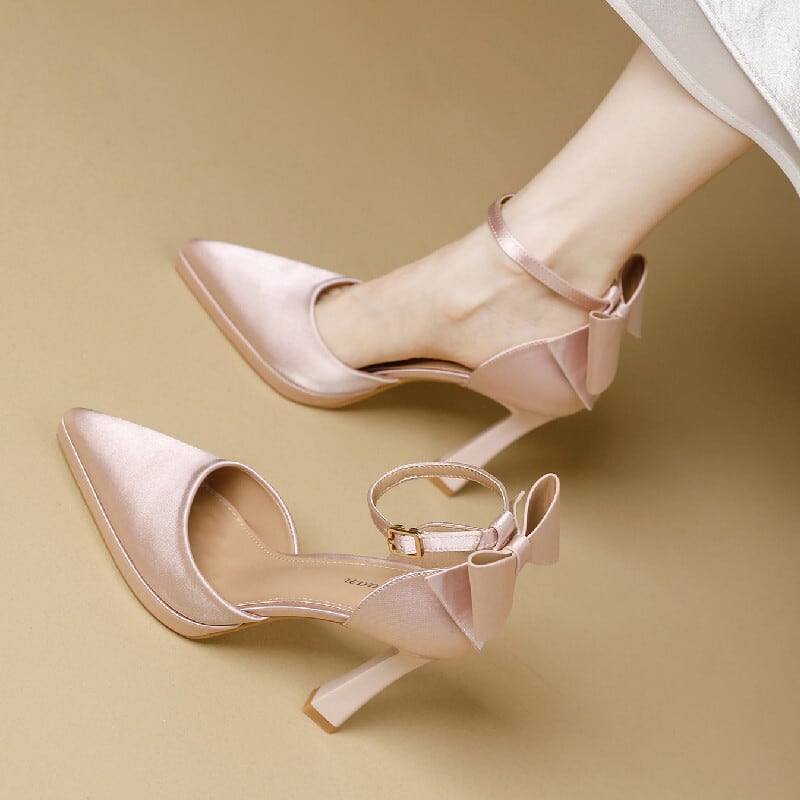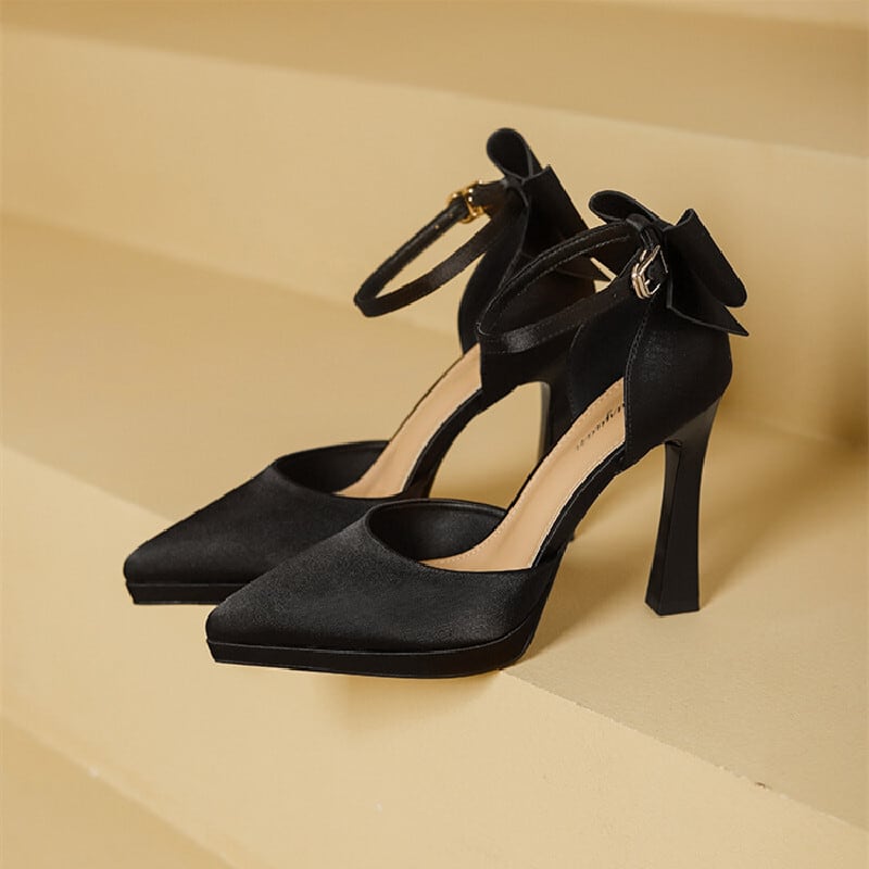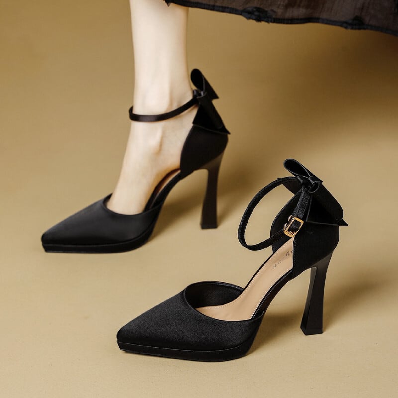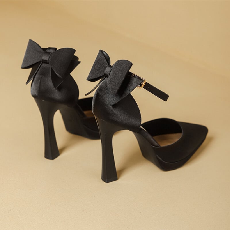 シューズ パンプス ハイヒール 立体リボン サテン ブラック ライトピンク 11CM