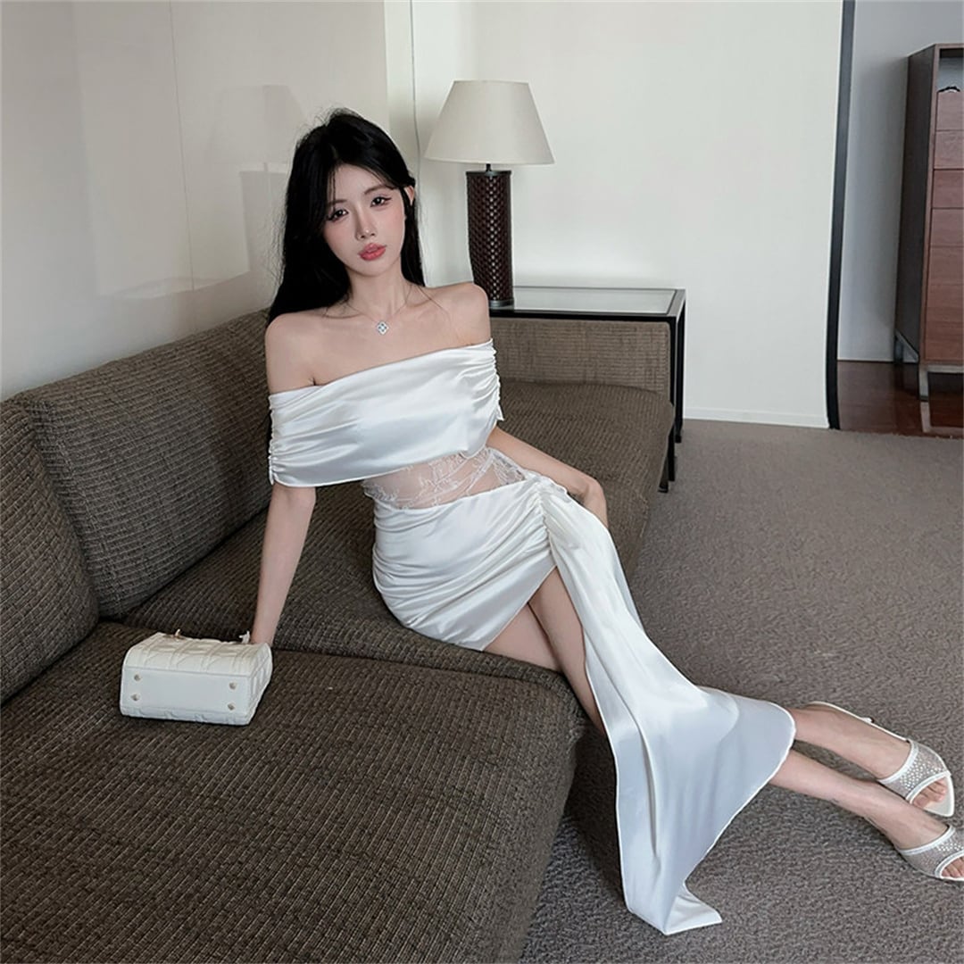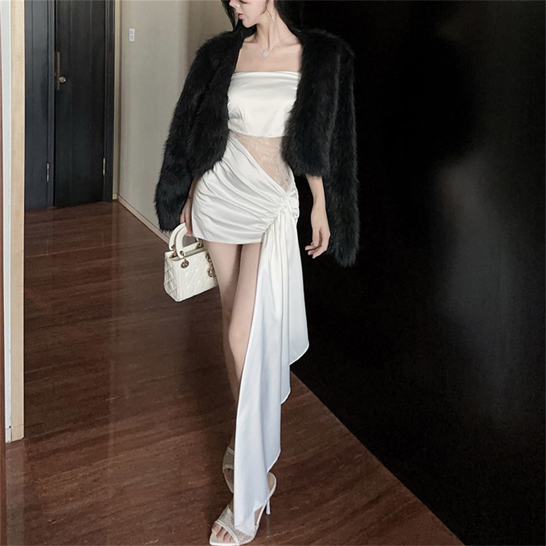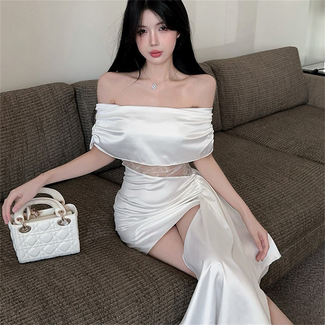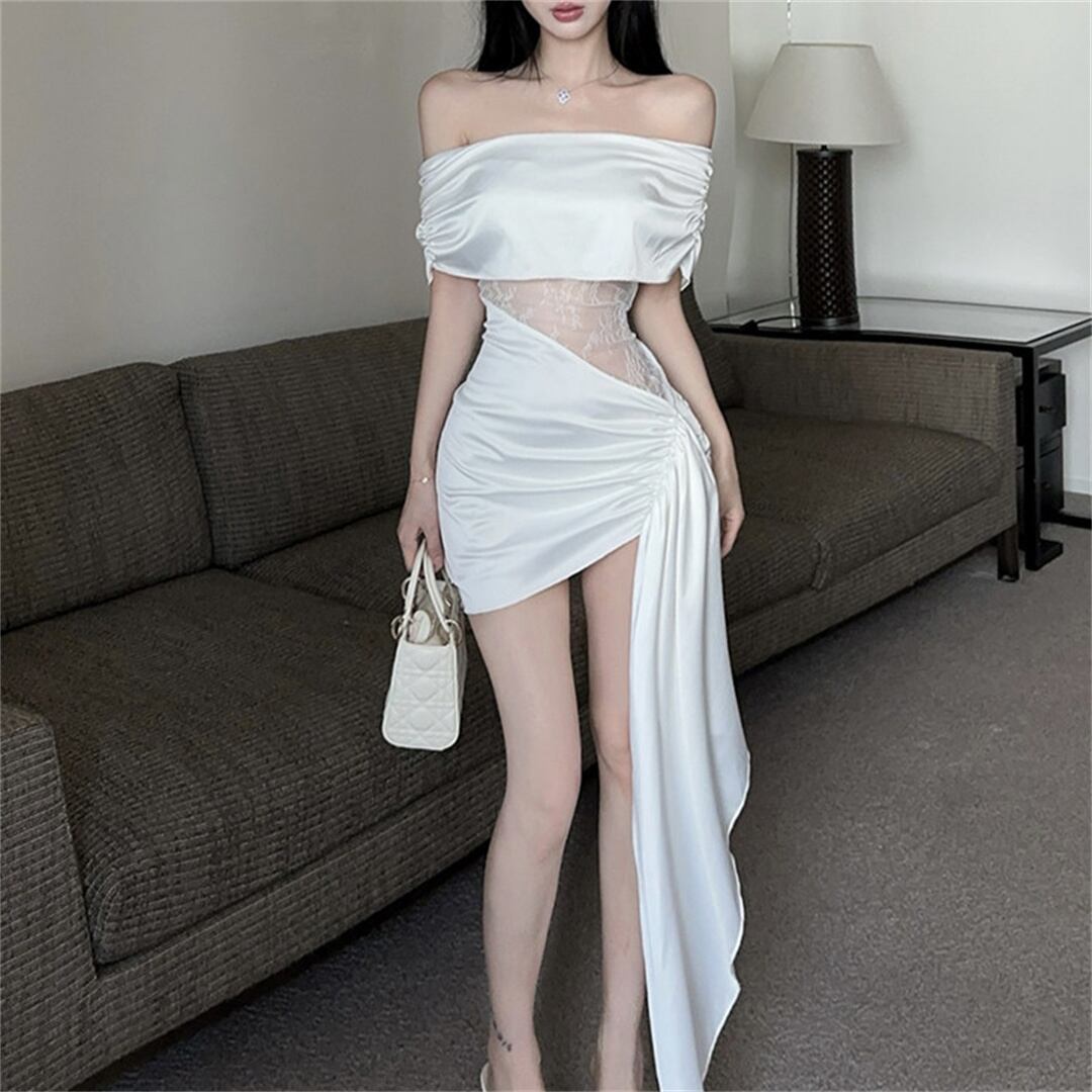 ワンピース オフショルダー 切り替え ボディコン 不規則 ホワイト S M L