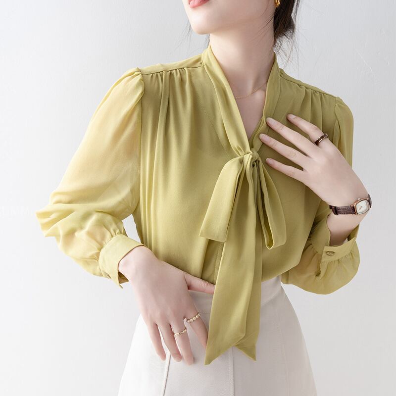 トップス シャツ · ブラウス リボン OL/フォーマル 長袖 グリーン S M L XL