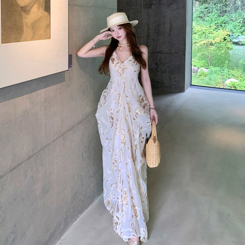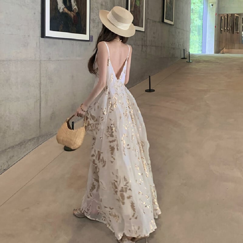 キャミソールワンピース バックレス スパンコール ゆったり カジュアル S M L