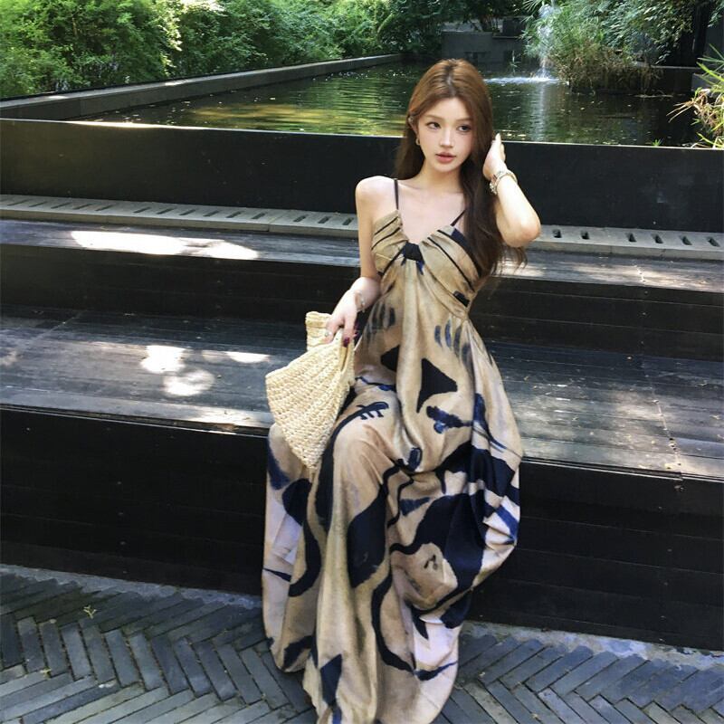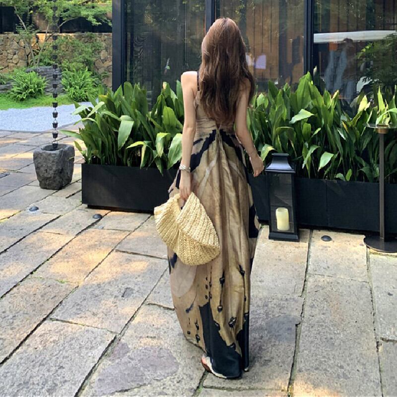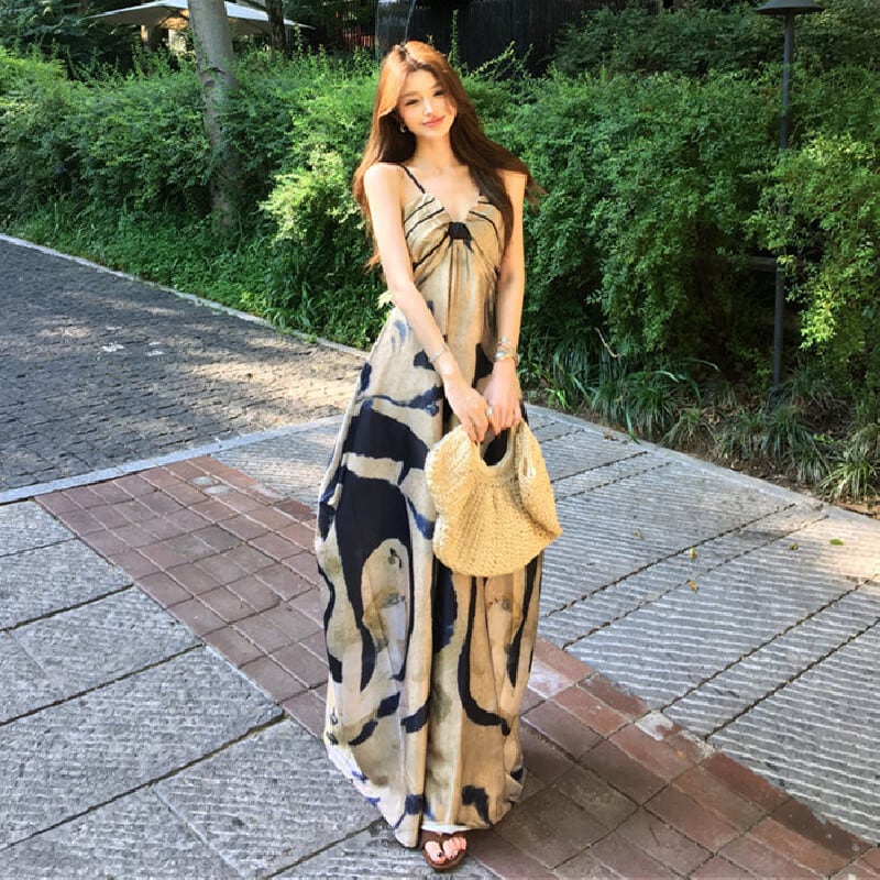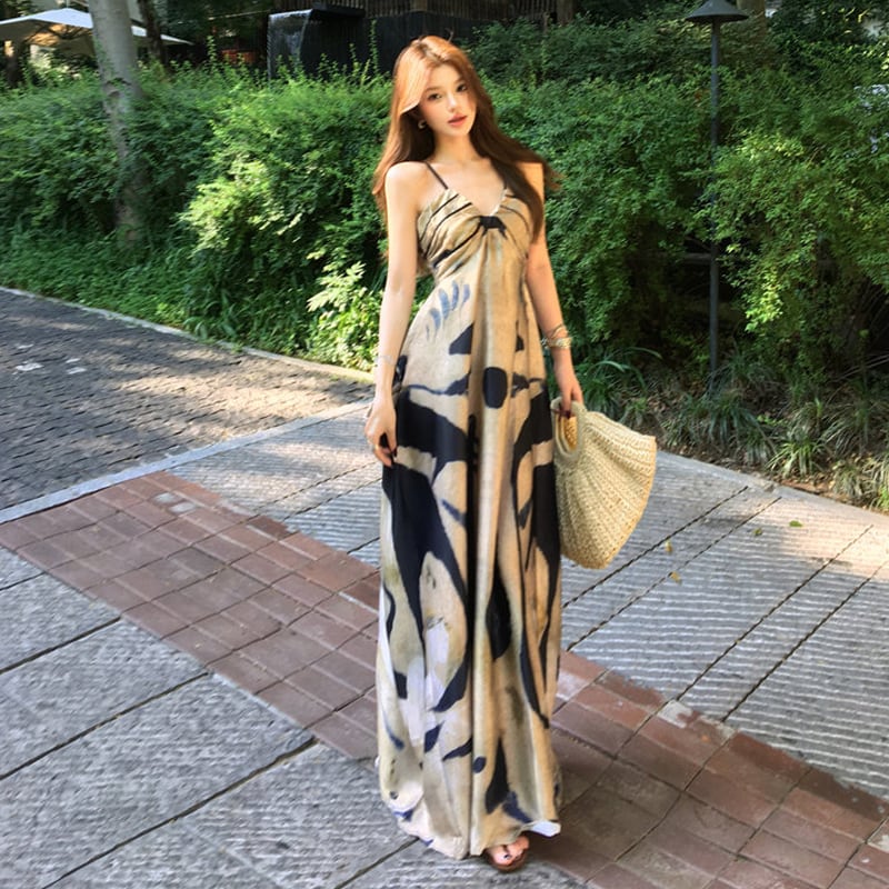 キャミソールワンピース プリント ゆったり バックレス カジュアル S M