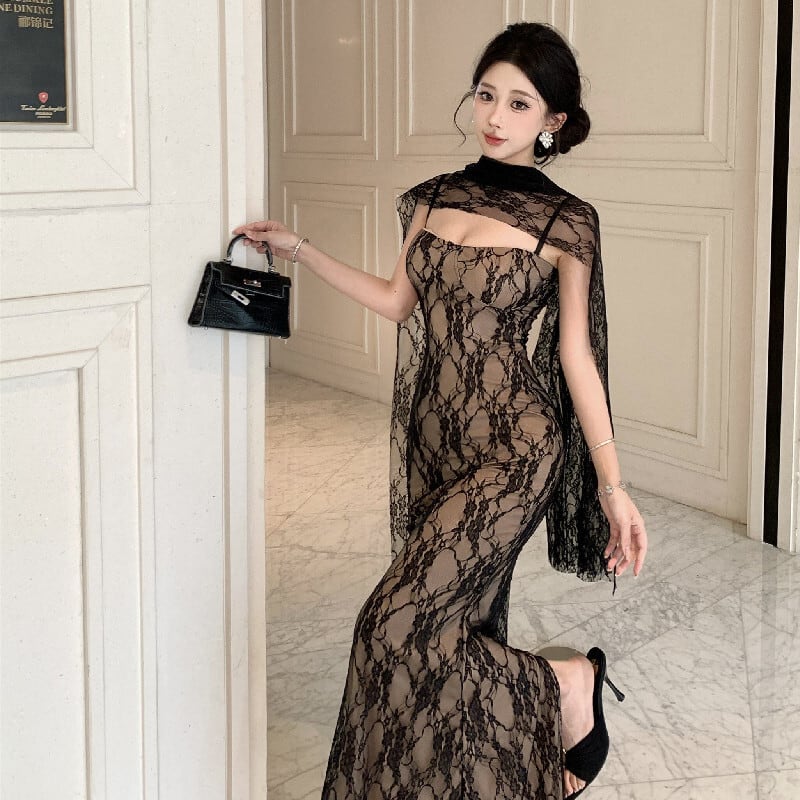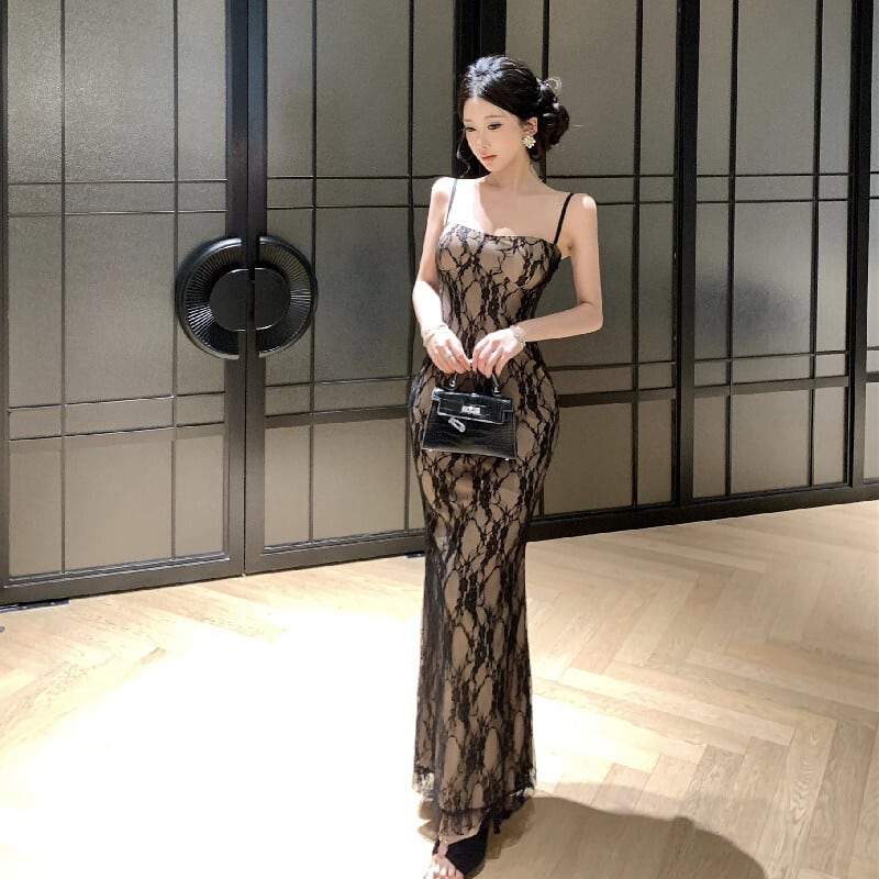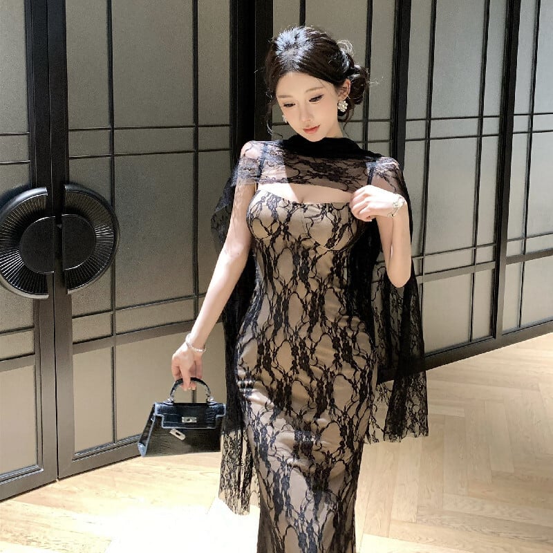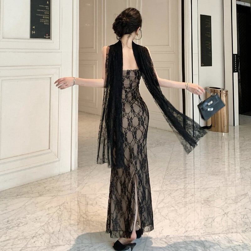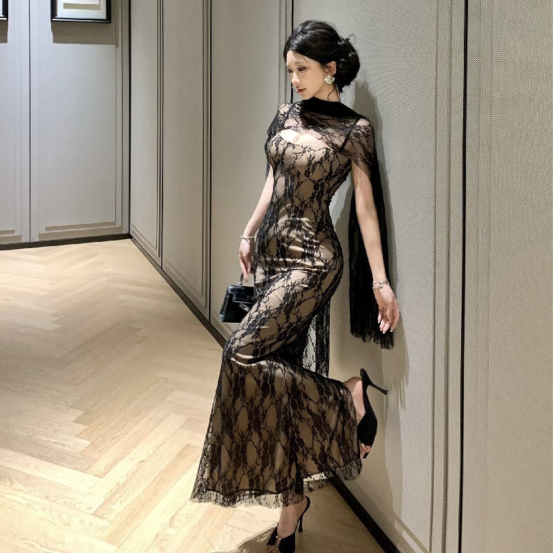 ワンピース セクシー レース バックスリット 視線集中 ブラック S M L