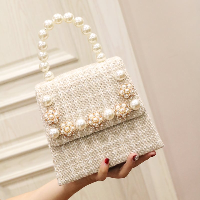 バッグ パーテイーバック 大人気 結婚式バッグ 手持ちバッグ 高品質 二次会 宴会 演奏会 ツイード パール ベージュ グリーン ブルー ピンク