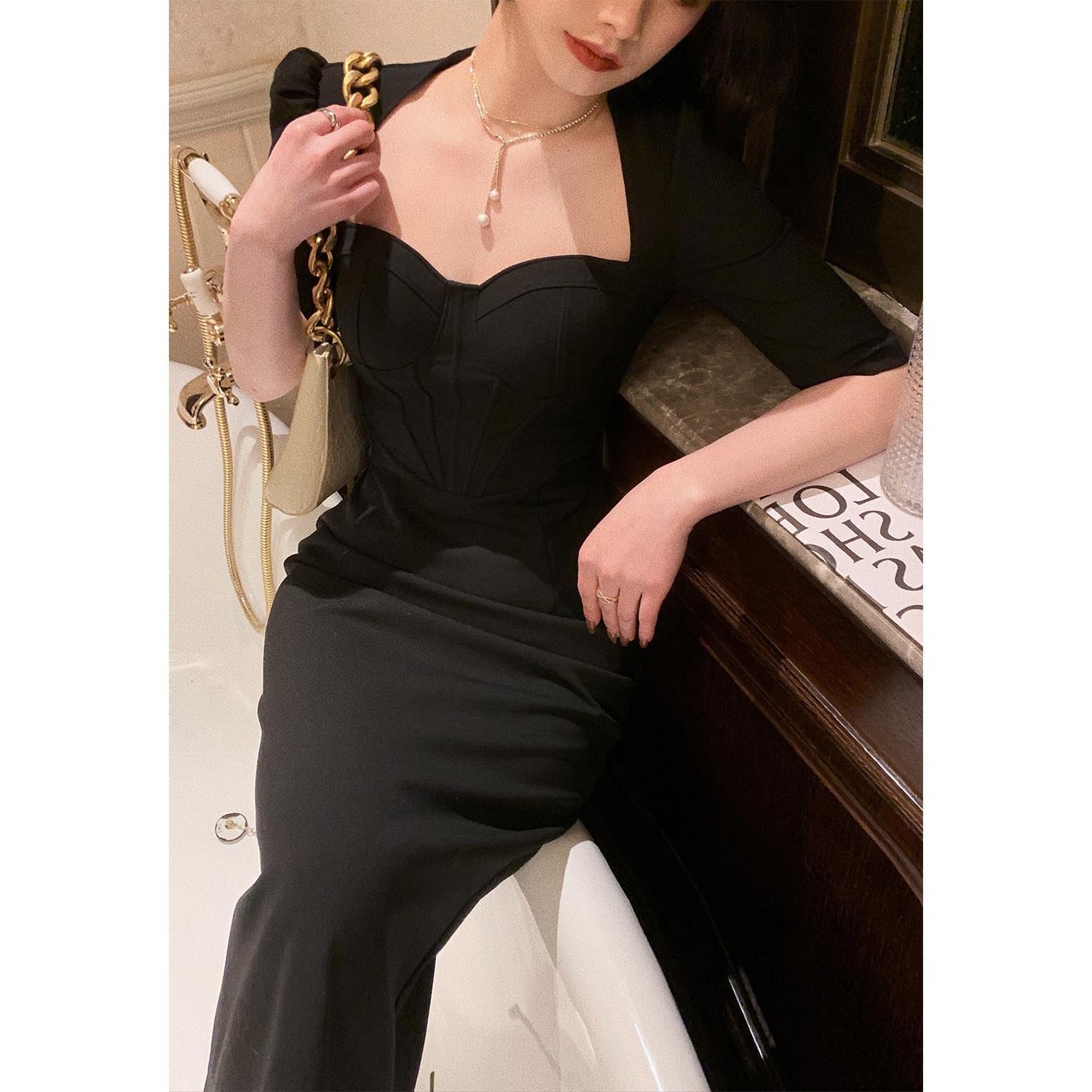 ハイエンド ゴージャス 気質UP 無地 パーティードレス 高級感 ブラック ホワイト ワンピース S M L XL