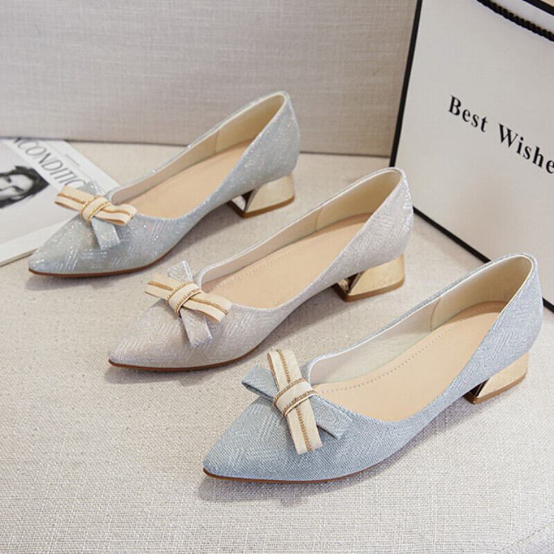 シューズ パンプス 蝶結び 通勤 フェミニン ライトブルー シャンパン色 3CM