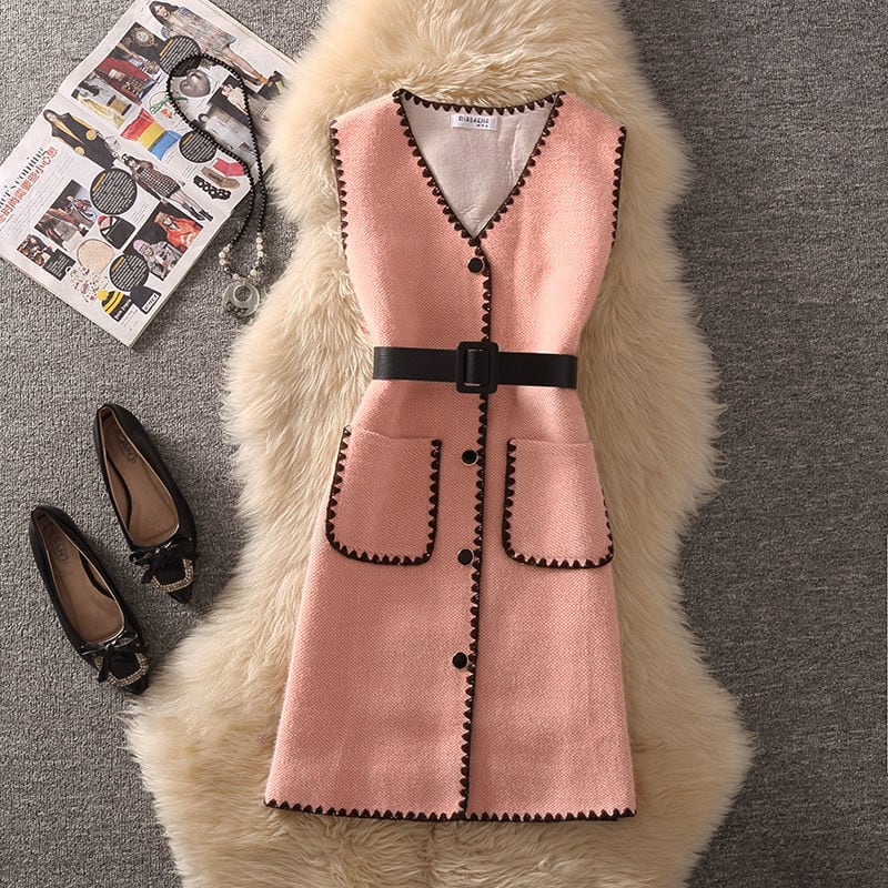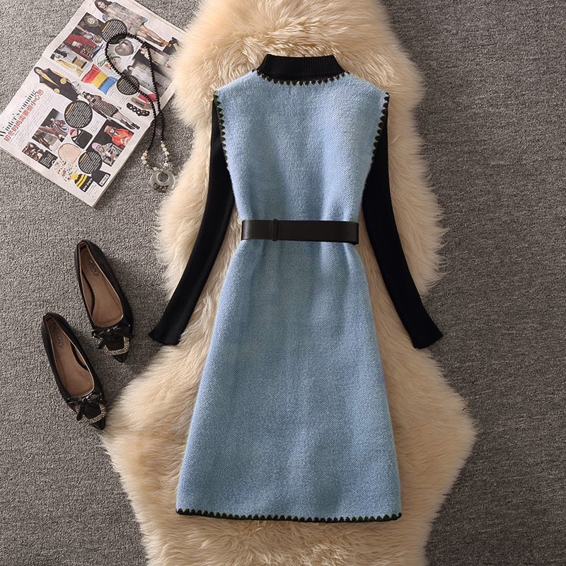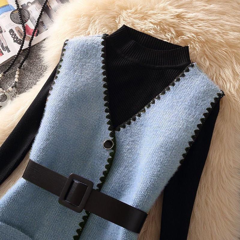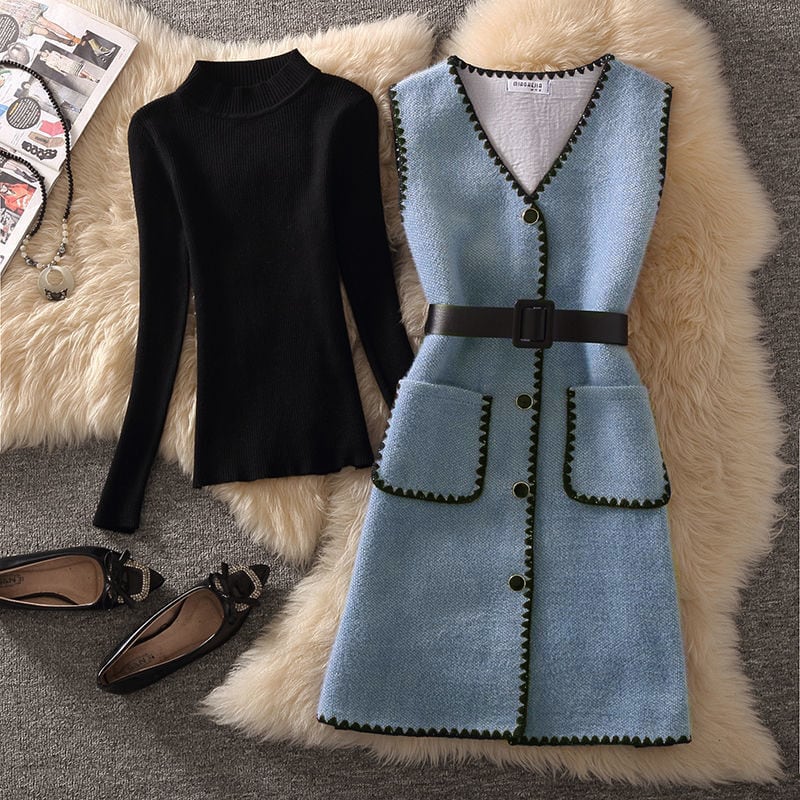 セットアップ トップス+ベストワンピース 4色展開 ニット ライトベージュ ブルー サーモンピンク ブラック S M L XL