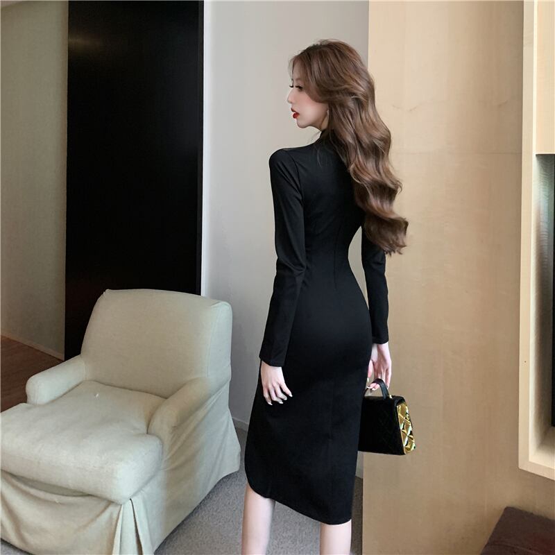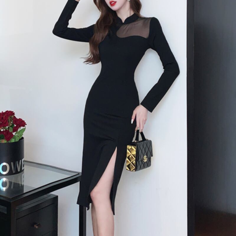 【CHERRYシリーズ】ワンピース チャイナ風 黒 デザイン感 ブラック S M L