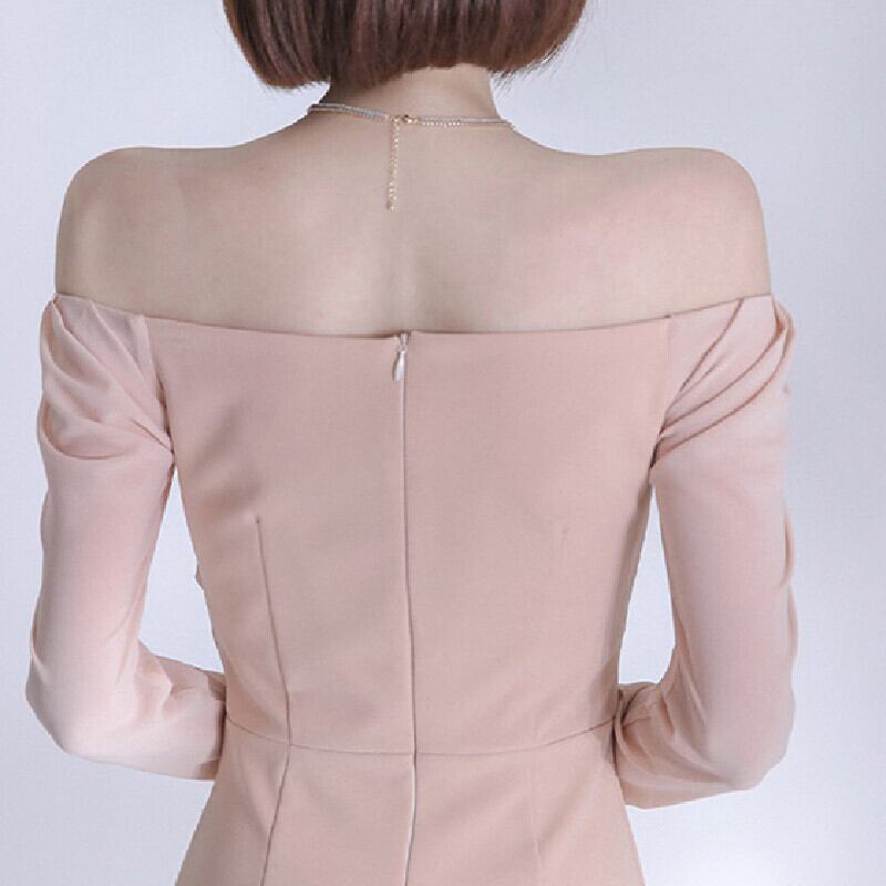 ワンピース ボートネックデザイン 無地 気質アップ ピンク S M L XL