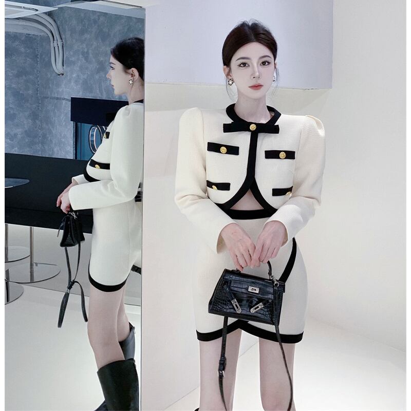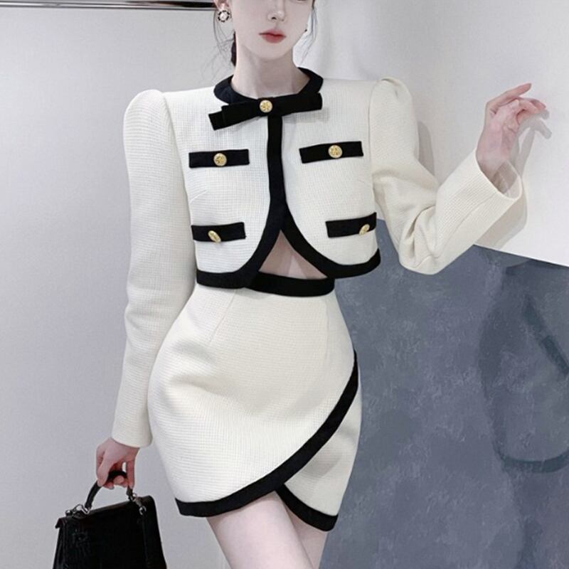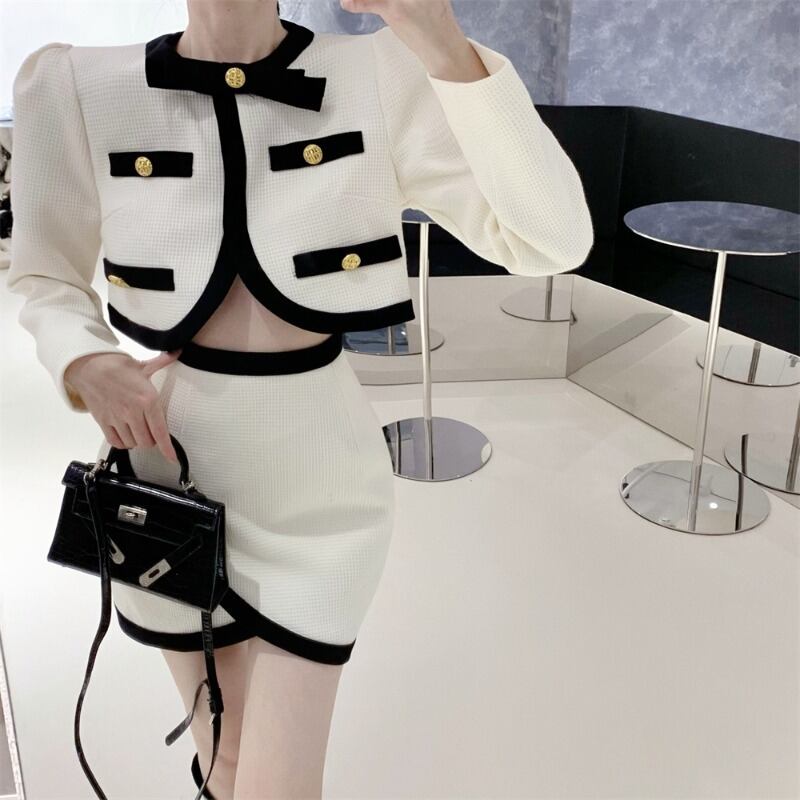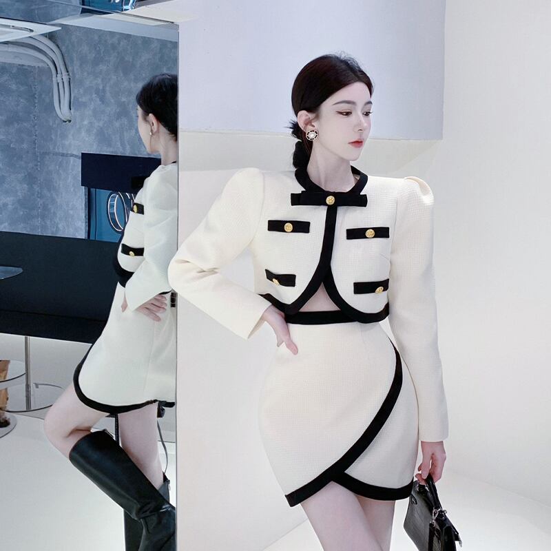 セットアップ 絶対欲しい 主役級 学園風 OL/通勤 気質UP 配色 ホワイト アウター+スカート S M L