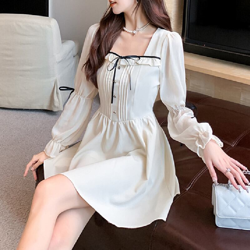 【CHERRYシリーズ】ワンピース スクエアネック スウィート ベージュ S M L XL