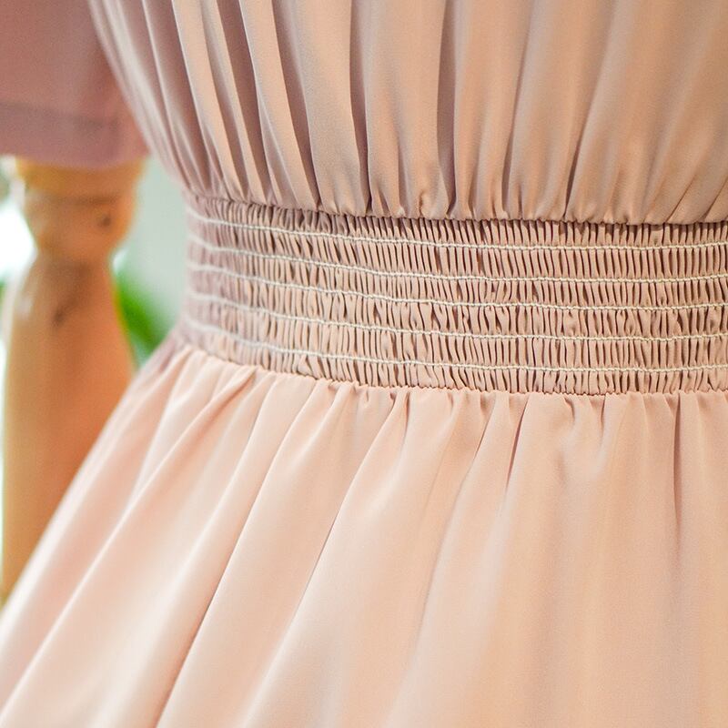 【Sunflowerシリーズ】ワンピース Vネック 無地 エレガント Aライン ピンク S M L XL