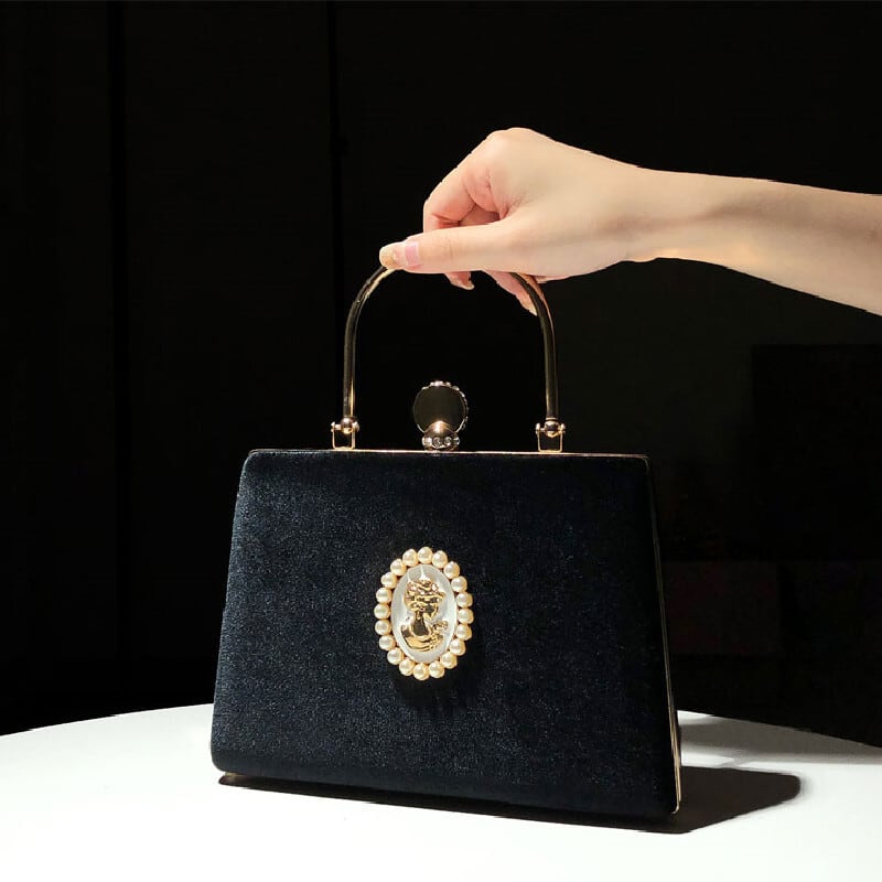 バッグ ビロード パーティーバック 黒 チェーンバッグ 手持ちバッグ デート ブラック