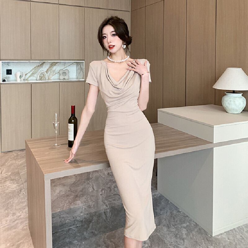 【CHERRYシリーズ】ワンピース 2色展開 フェミニン 無地 ライトコーヒー色 ブラック S M L