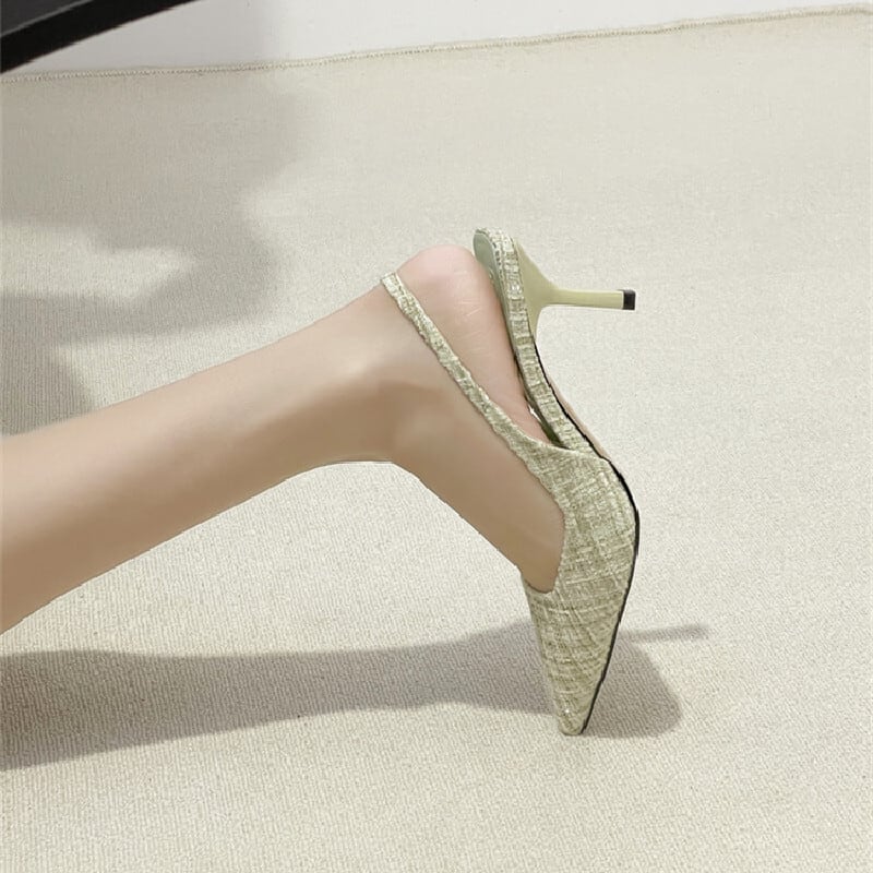 シューズ パンプス 3色展開 ツイード ブルー ベージュ グリーン 7CM