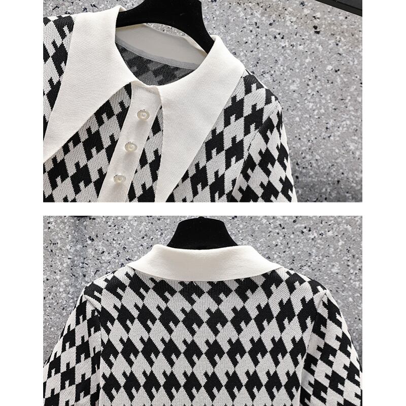 【YOYOシリーズ】ワンピース 2色展開 千鳥格子柄 POLOネック 大きいサイズ ブラック ホワイト ピンク M L XL 2XL