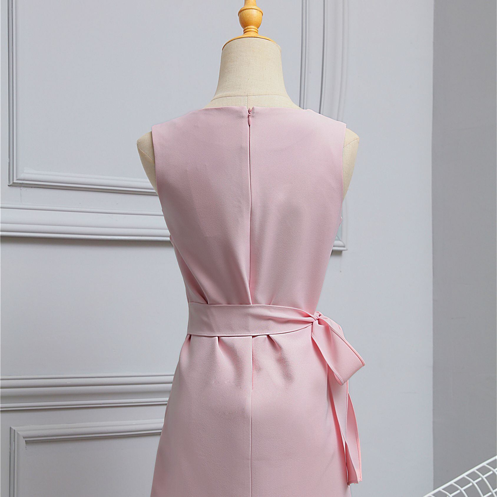 【Sunflowerシリーズ】ワンピース ラウンドネック ノースリーブ Aライン ピンク S M L