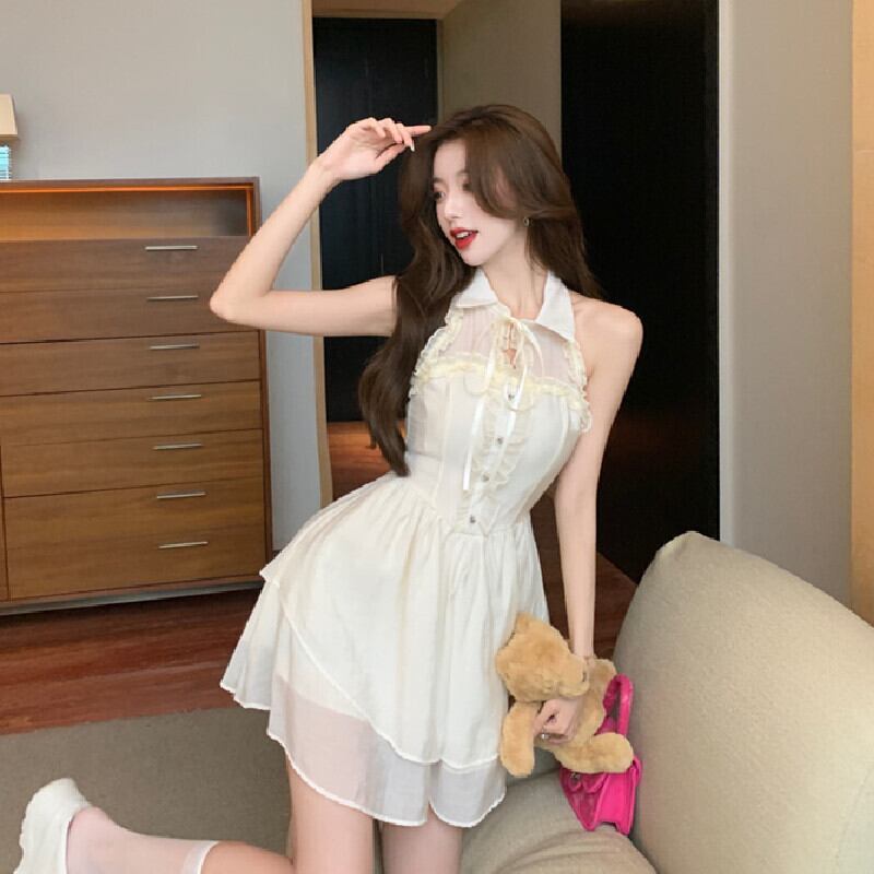 【CHERRYシリーズ】ワンピース POLOネック Aライン ノースリーブ スウィート ベージュ S M L XL