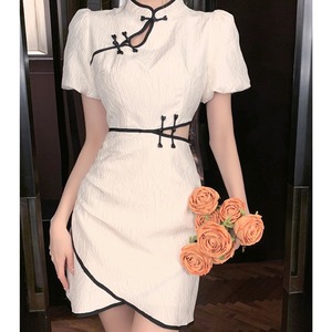 【CHERRYシリーズ】ワンピース パフスリーブ パフスリーブ 膝上 ベージュ S M L XL