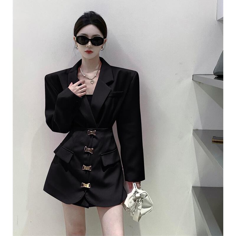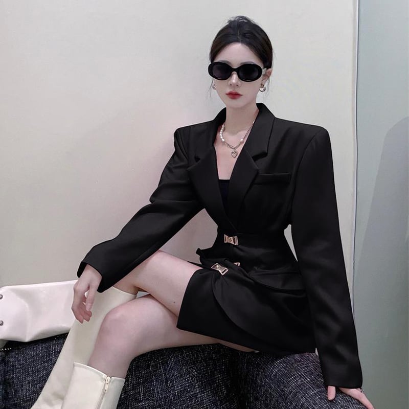 セットアップ OL/通勤 クール Aライン アウター+スカート ピンク ブラック S M L