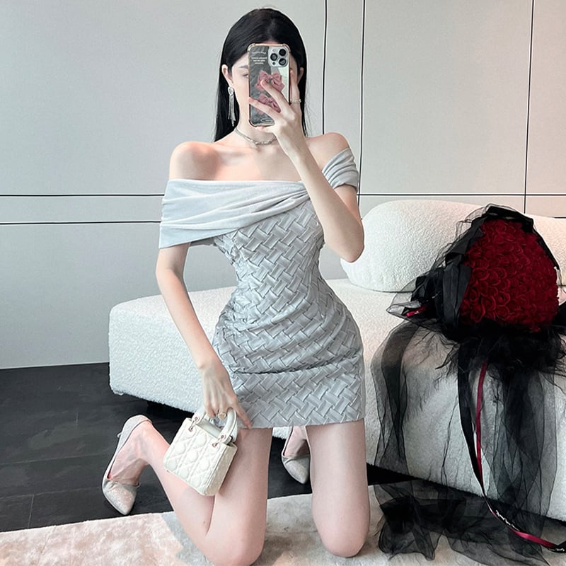 ワンピース セクシー ワンショルダー 個性 デザイン感 パーティー シルバー S M L