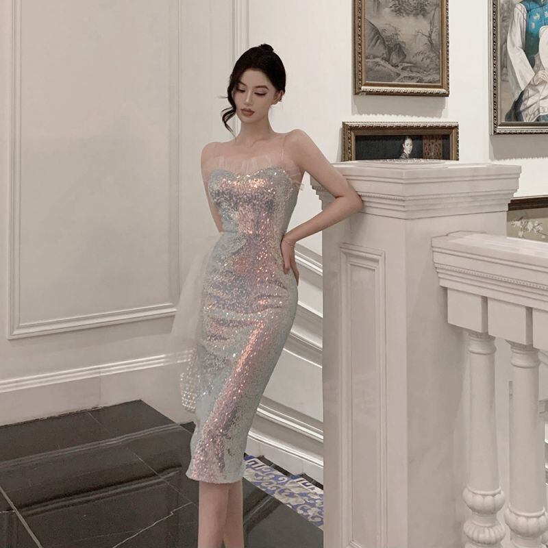 ワンピース セクシー 煌めかす ハイエンド スパンコール一 パーティー 吊りワンピース S M L