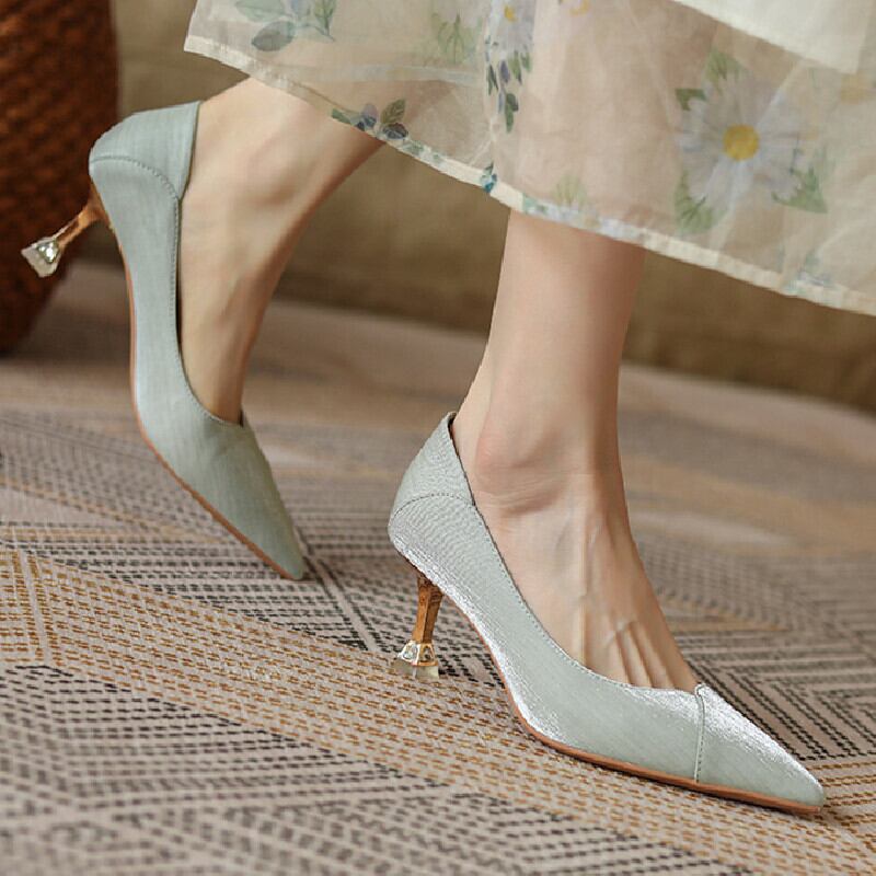 シューズ パンプス 3色展開 通勤 ブラック ライトグリーン ベージュ 6.5CM